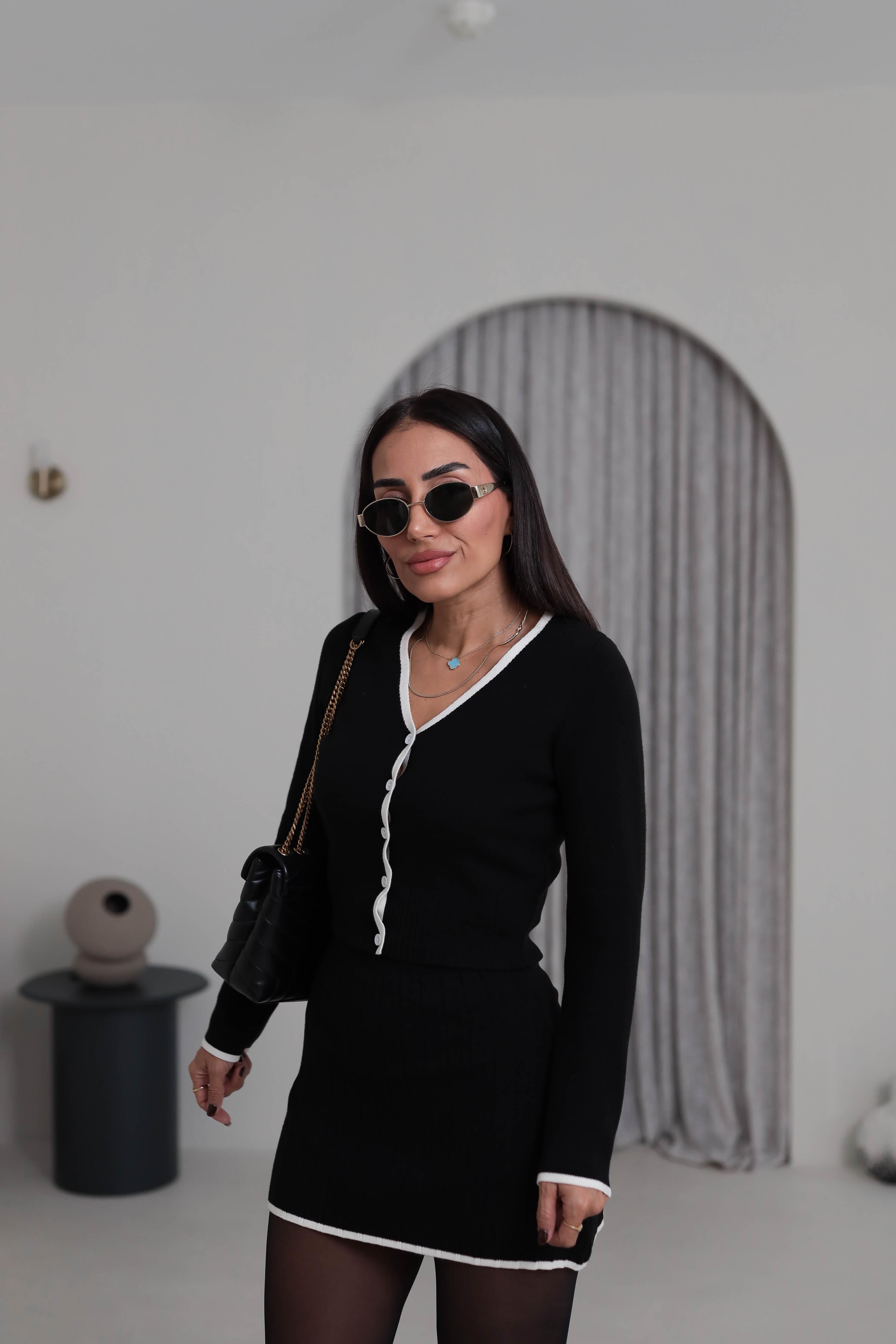 0043 Biyeli Etekli Triko Takım SİYAH (P-000007427)