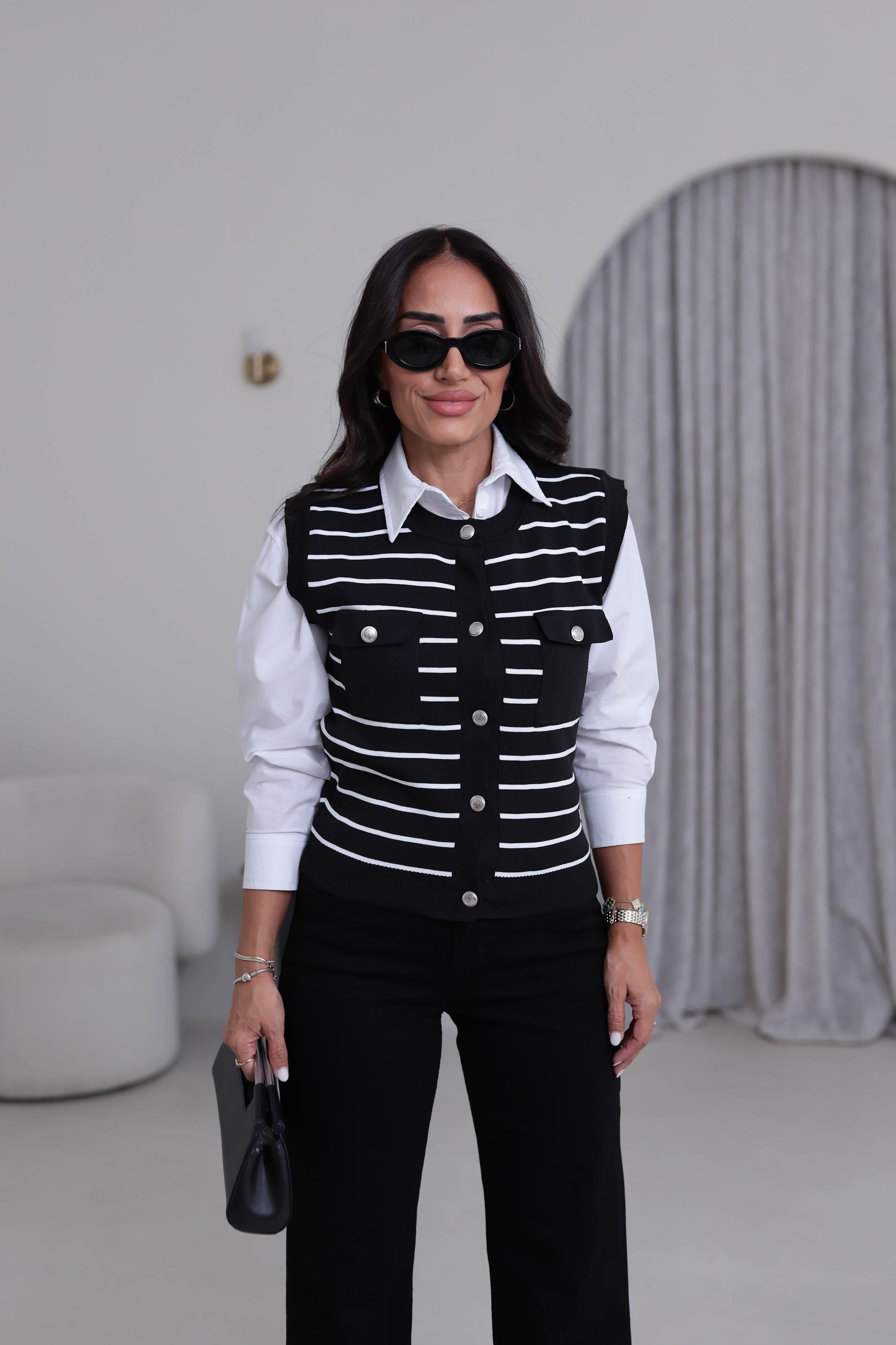 0363 Massi Çizgili Cepli Yelek SİYAH (P-000007279)
