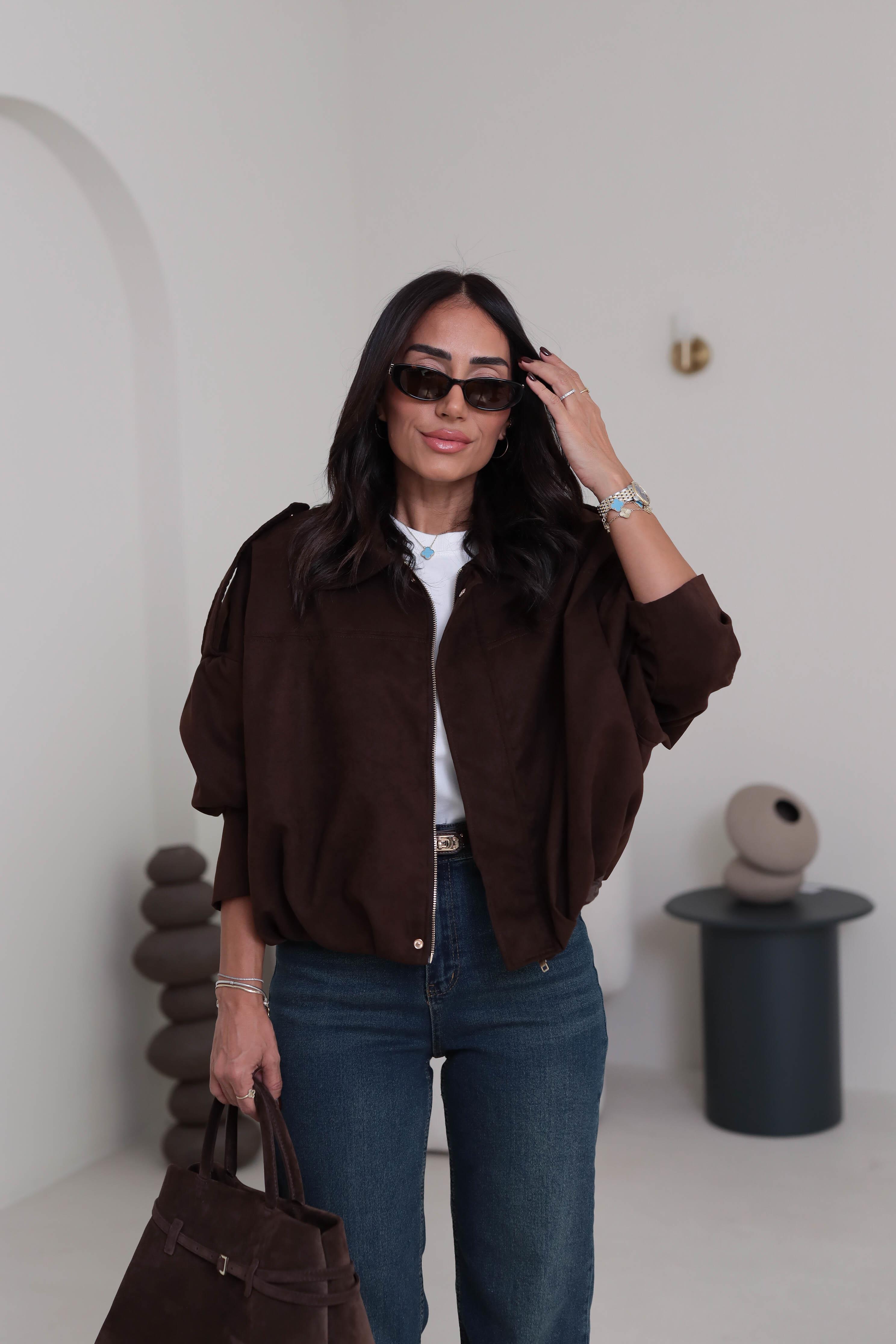 0493 Gömlek Yaka Apoletli Süet Bomber ACI KAHVE (P-000007443)
