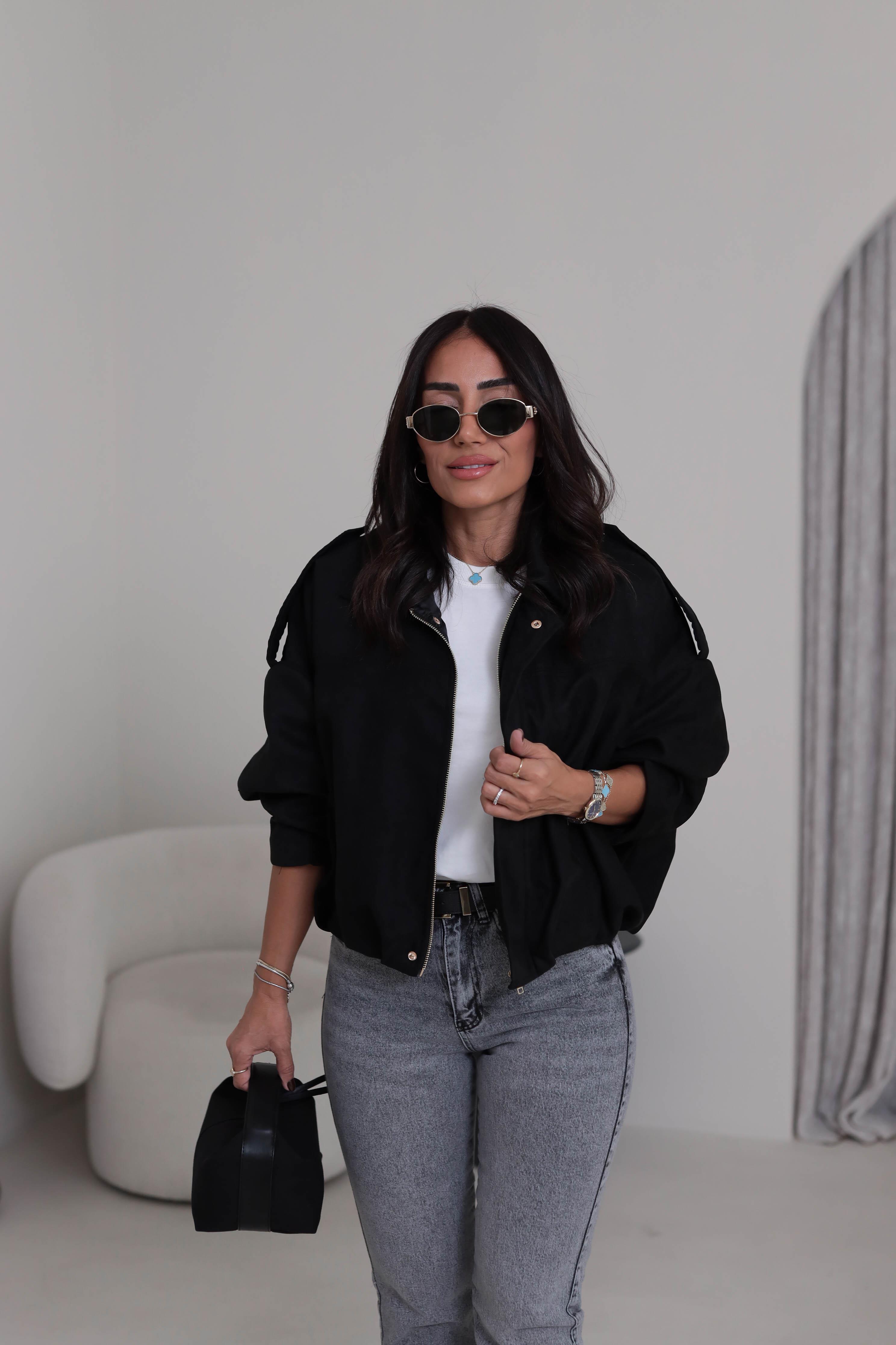 0493 Gömlek Yaka Apoletli Süet Bomber SİYAH (P-000007443)