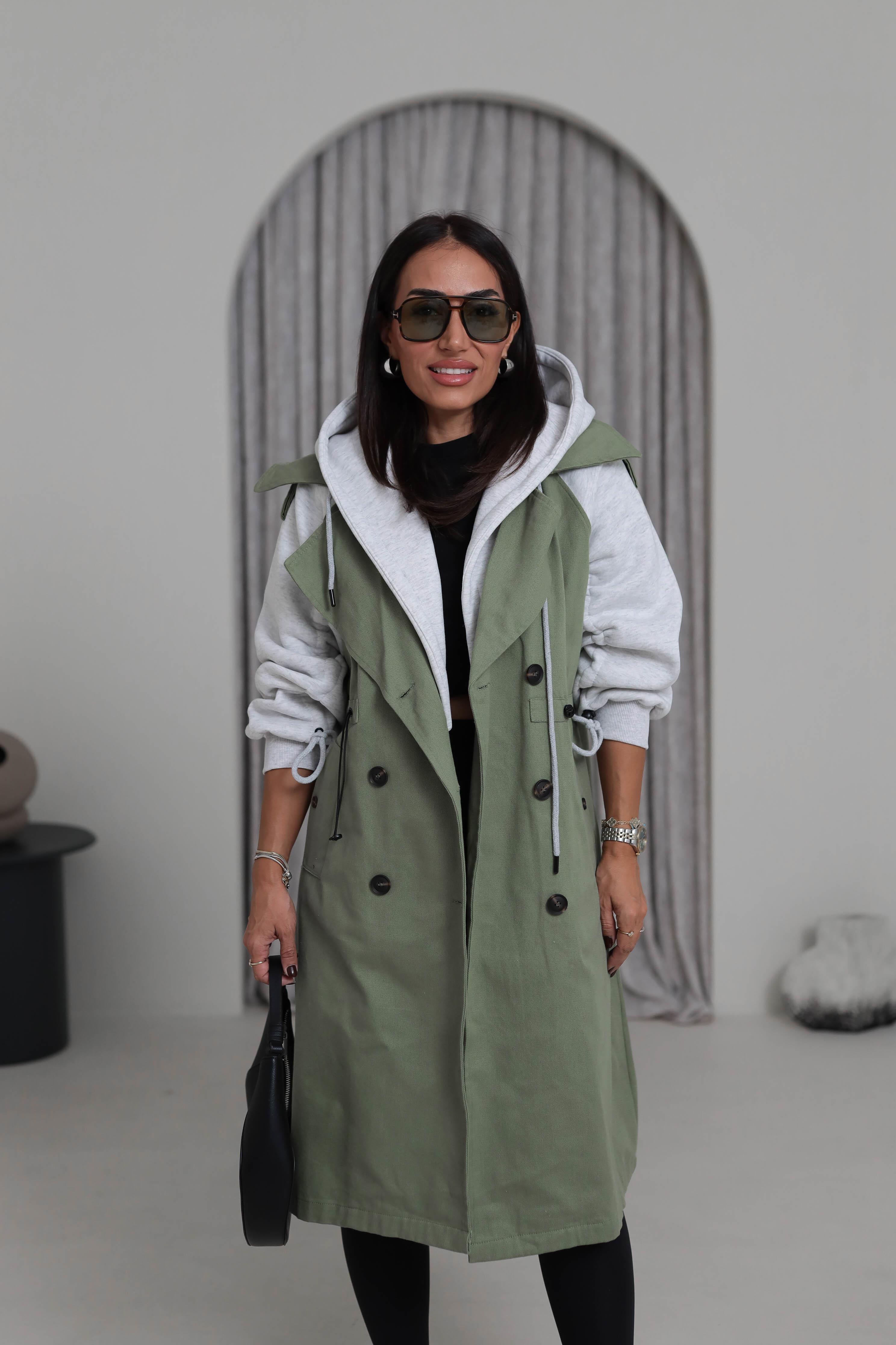 0534 Kolları Kalın Penye Garnili Trençkot HAKİ YEŞİL (P-000007457)