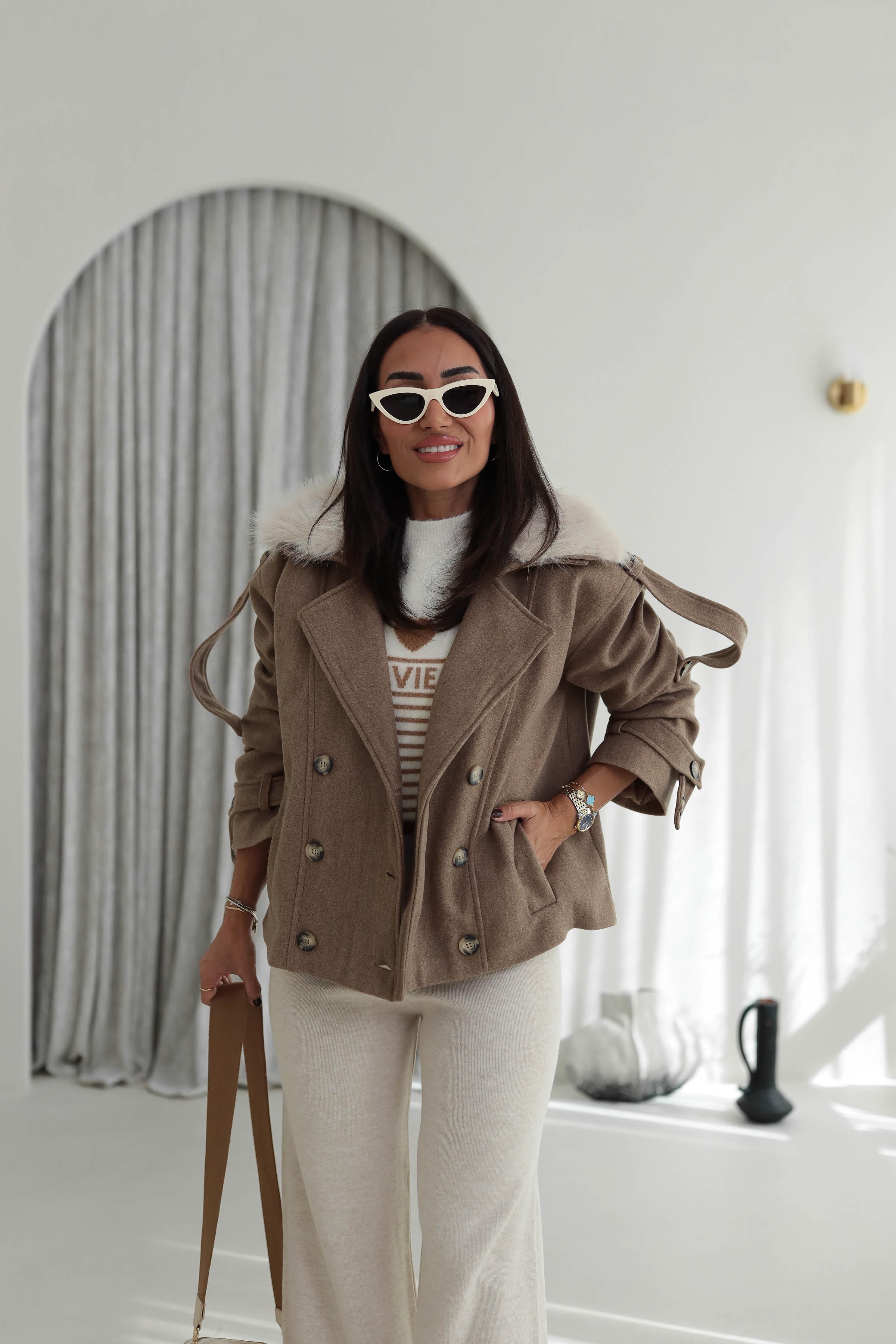 0560 Kürk Yaka Çıkabilir Astarlı Kaşe Ceket KAHVE (P-000007452)