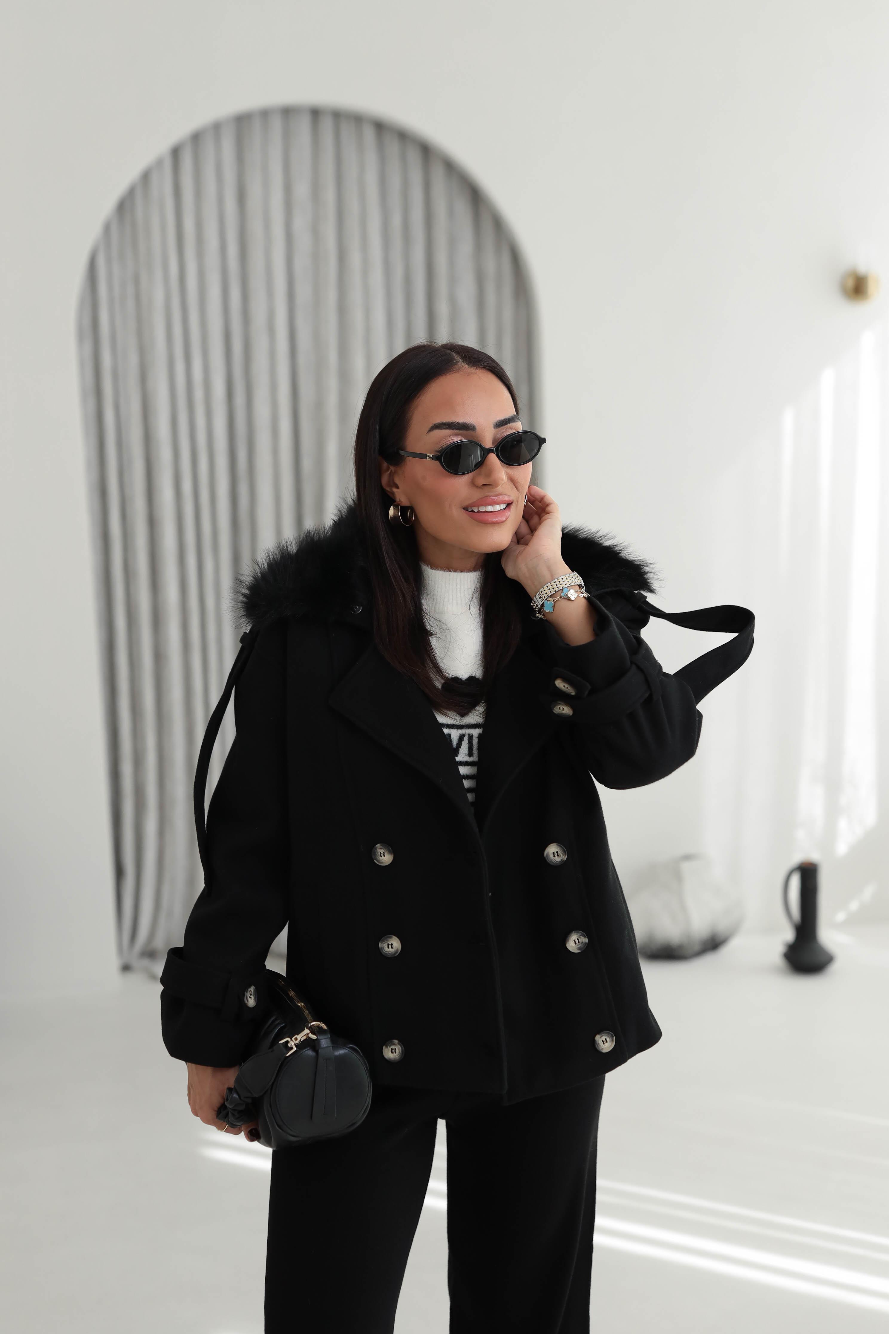 0560 Kürk Yaka Çıkabilir Astarlı Kaşe Ceket SİYAH (P-000007452)