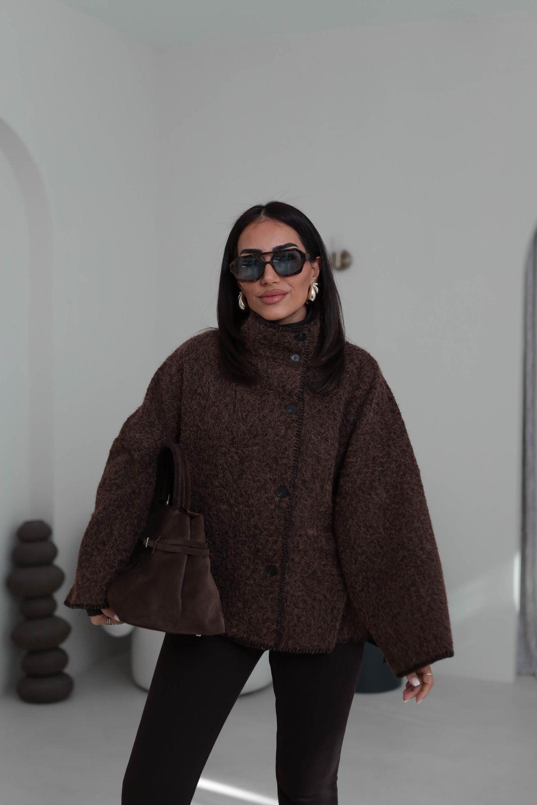 0563 Dikiş Detaylı Dik Yaka Kaşe Ceket ACI KAHVE