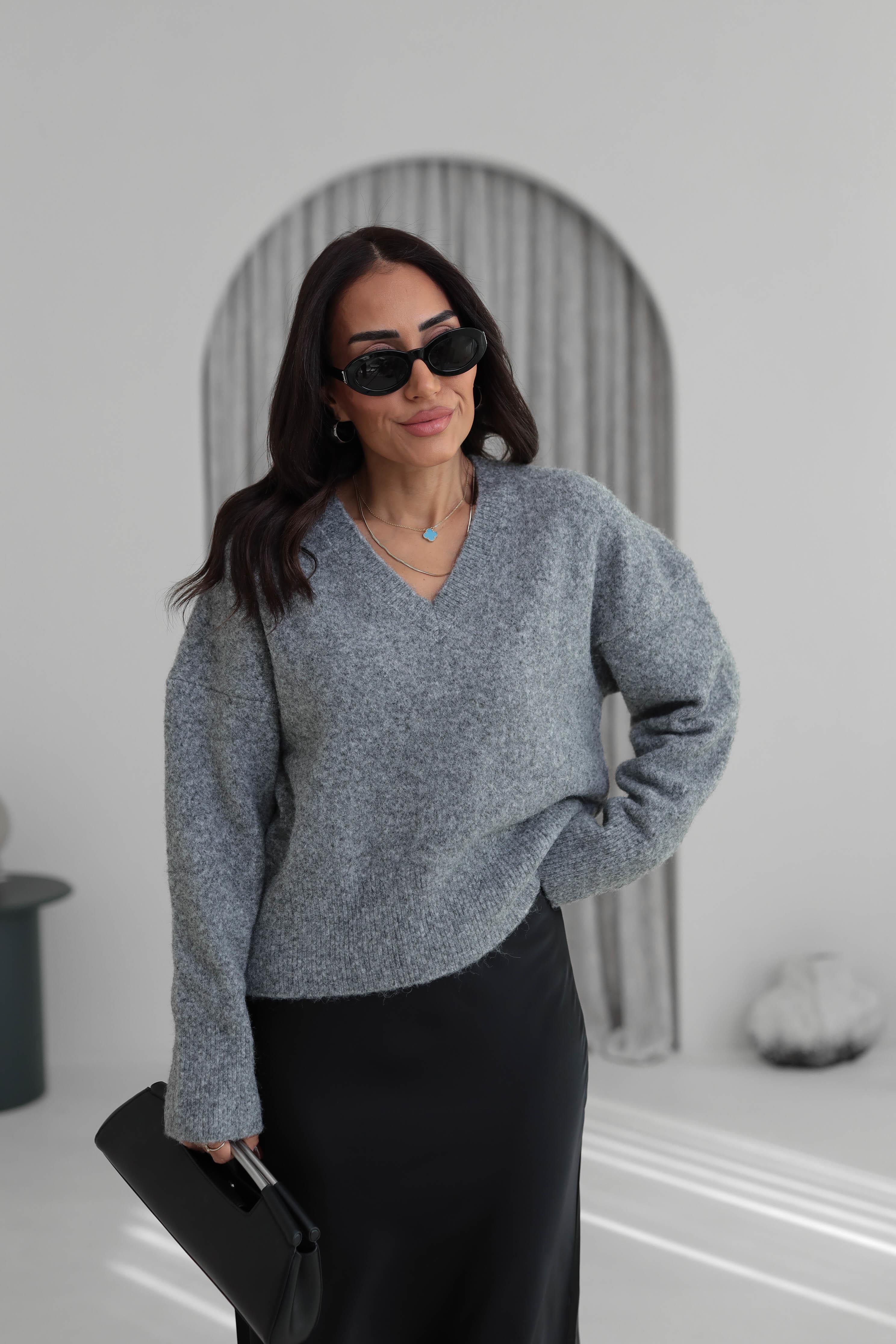 0645 V Yaka Yumuşak Dokulu Triko Kazak KOYU GRİ (P-000007292)