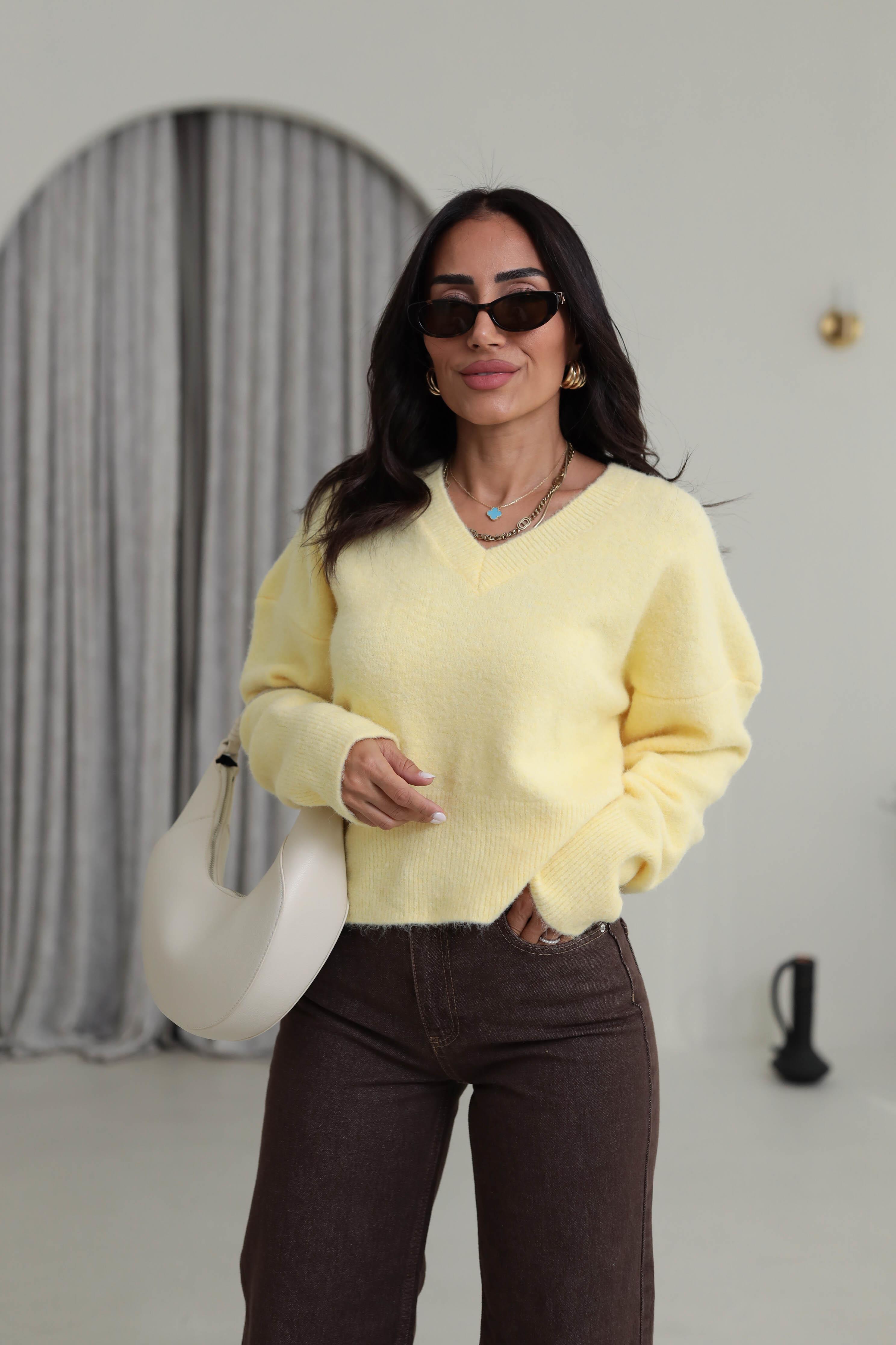 0645 V Yaka Yumuşak Dokulu Triko Kazak SARI (P-000007292)