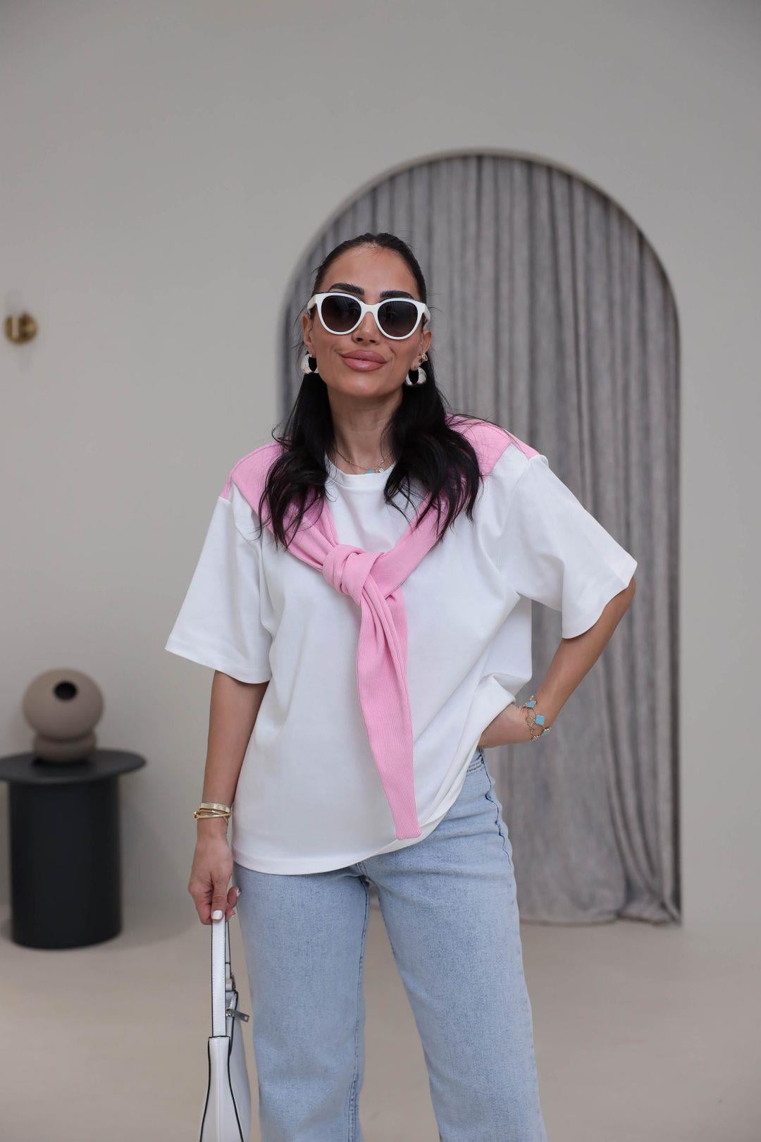 0688 Şal Detaylı Pamuklu Tshirt PEMBE