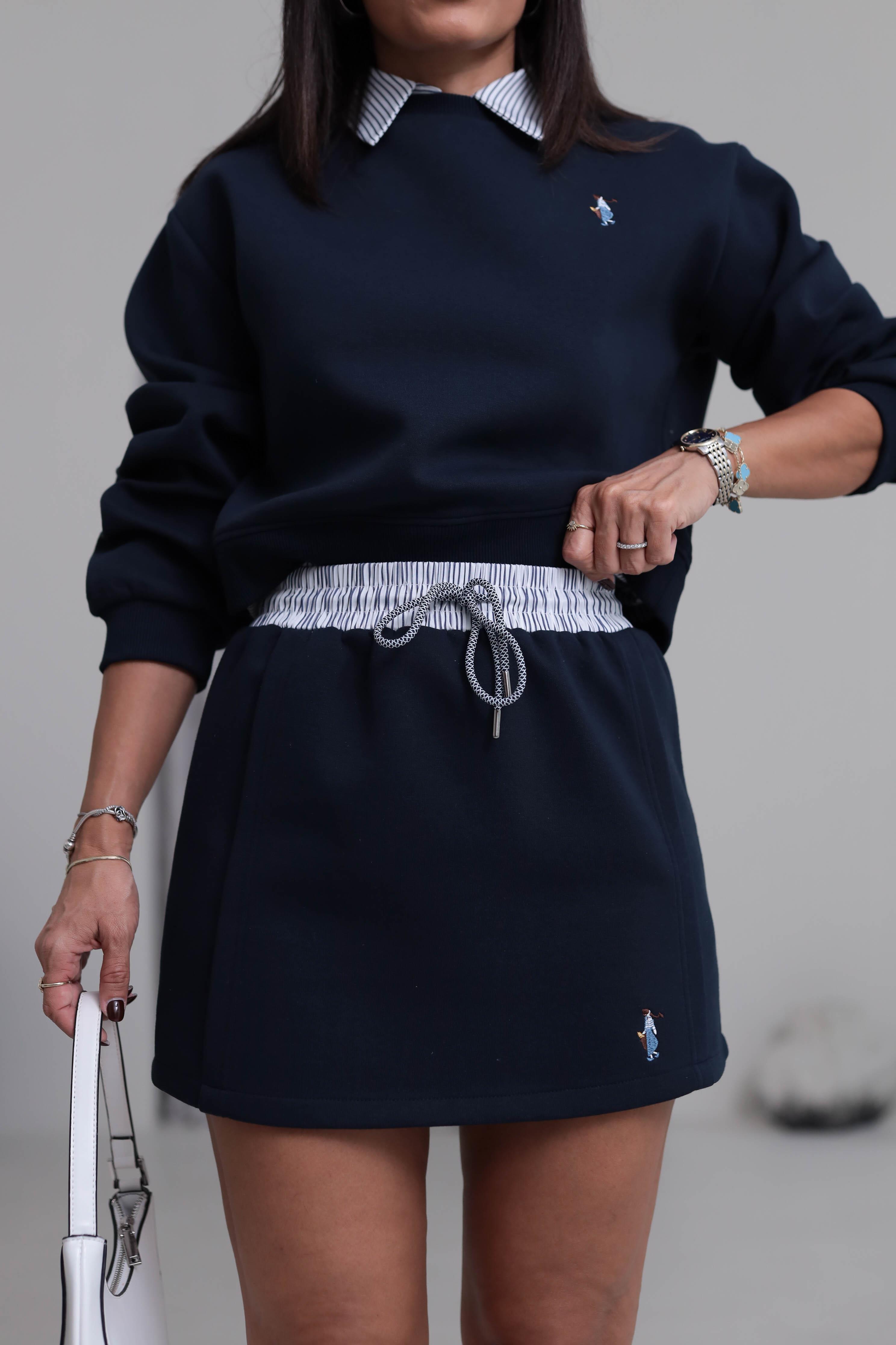0780 Bel Lastikli Bağcıklı Sweat Etek LACİVERT (P-000007482)