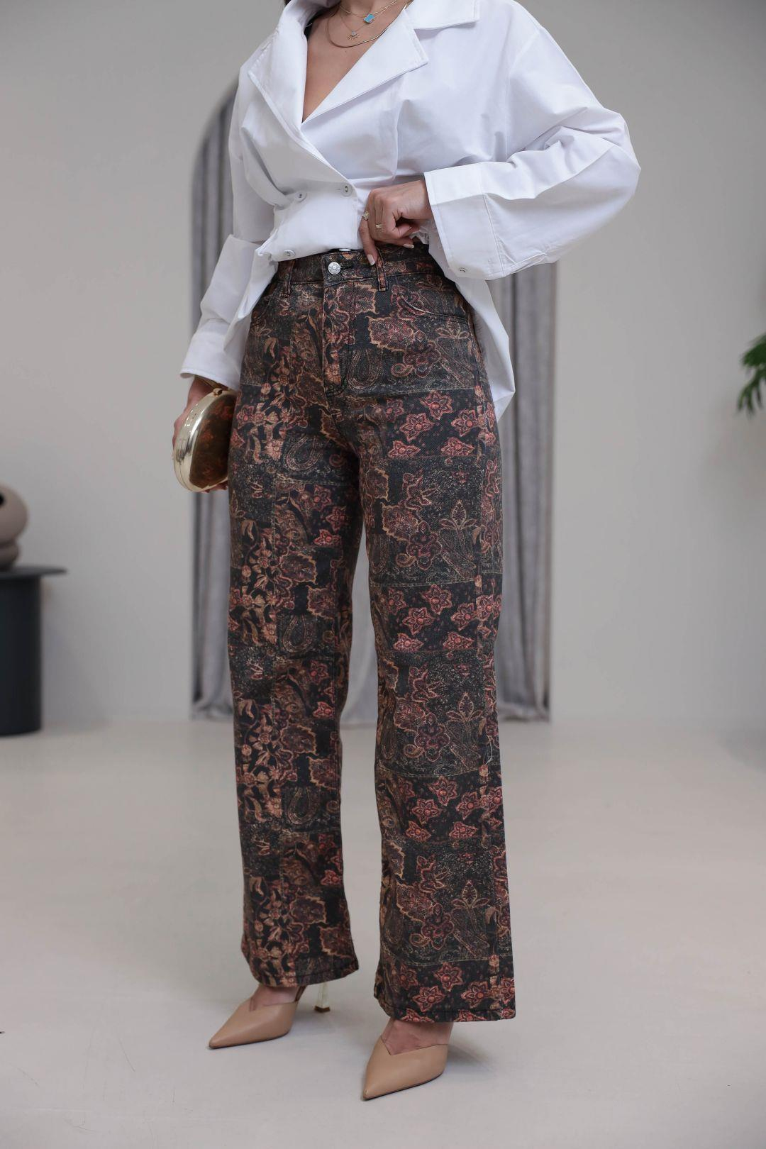 0915 Desenli Yüksek Bel Kot Pantolon DESENLİ