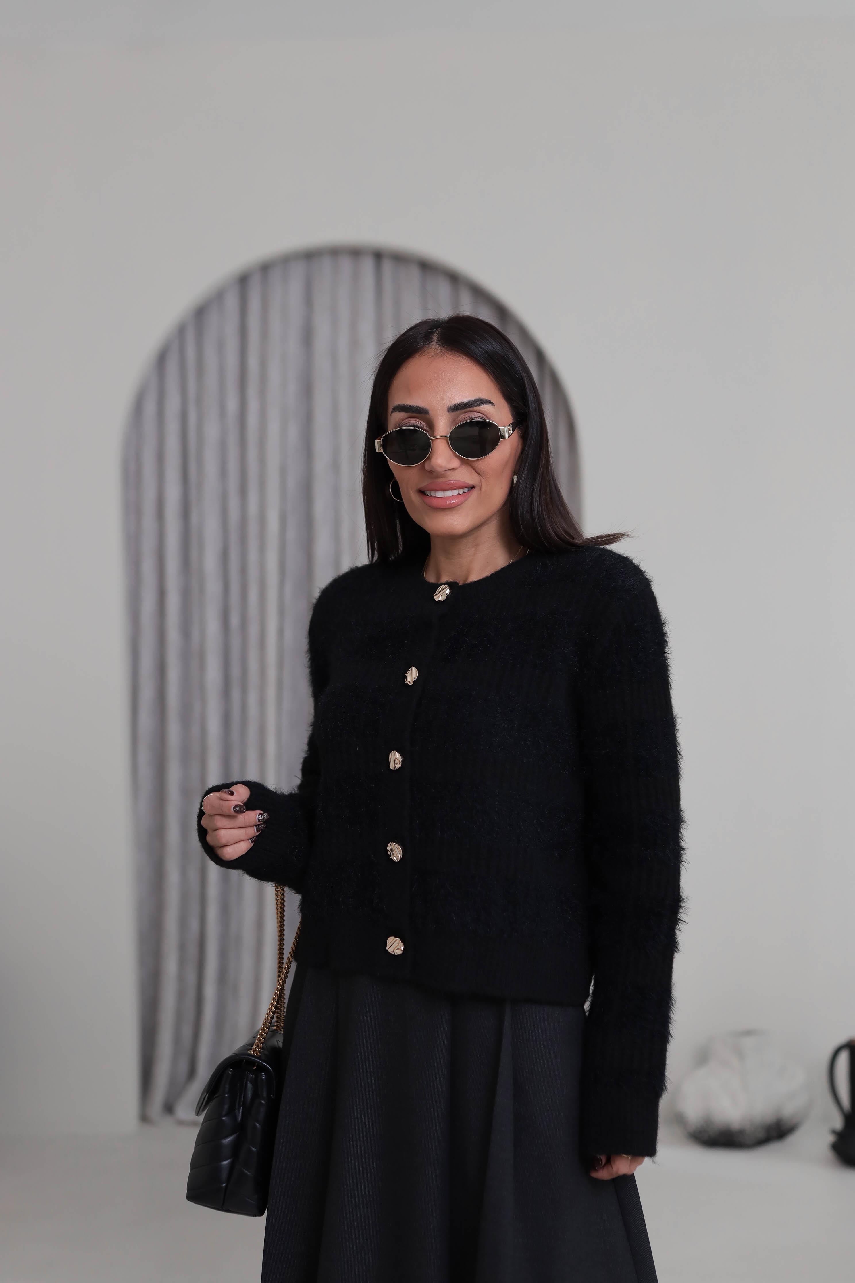 0990 Bisiklet Yaka Yumuşak Dokulu Gold Düğmeli Triko Hırka SİYAH (P-000007421)