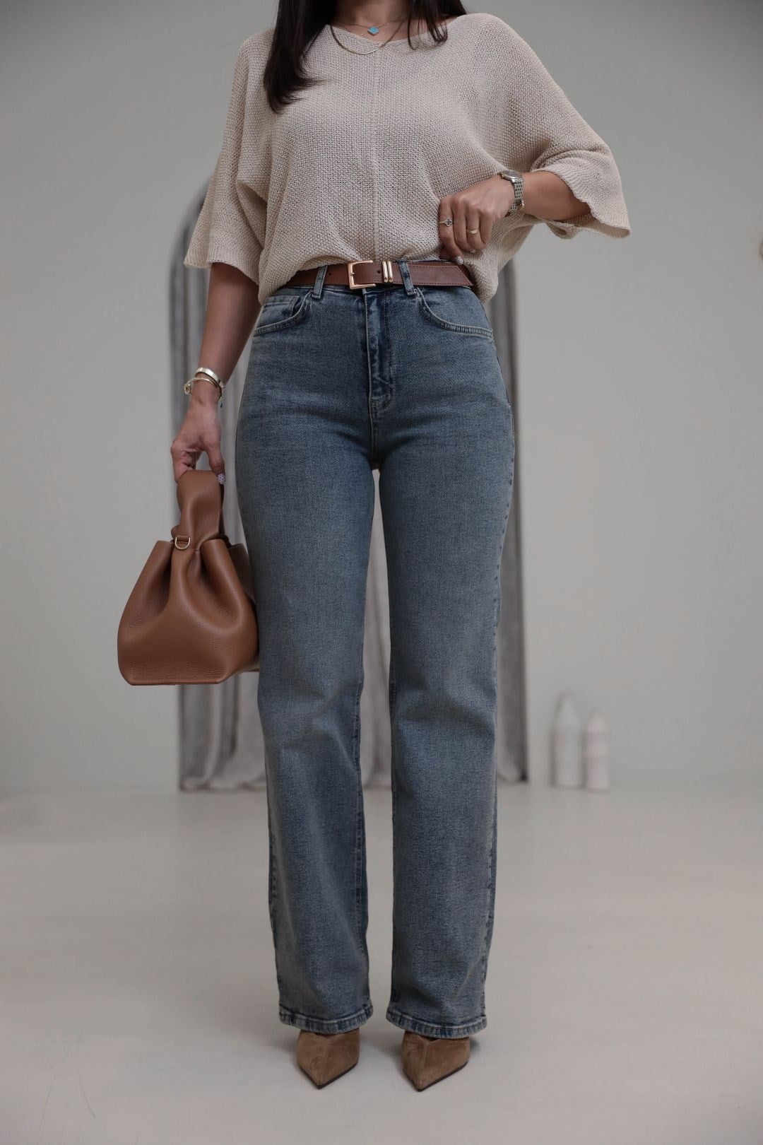 1001 Kemerli Wide Leg Pantolon TİNTLİ MAVİ