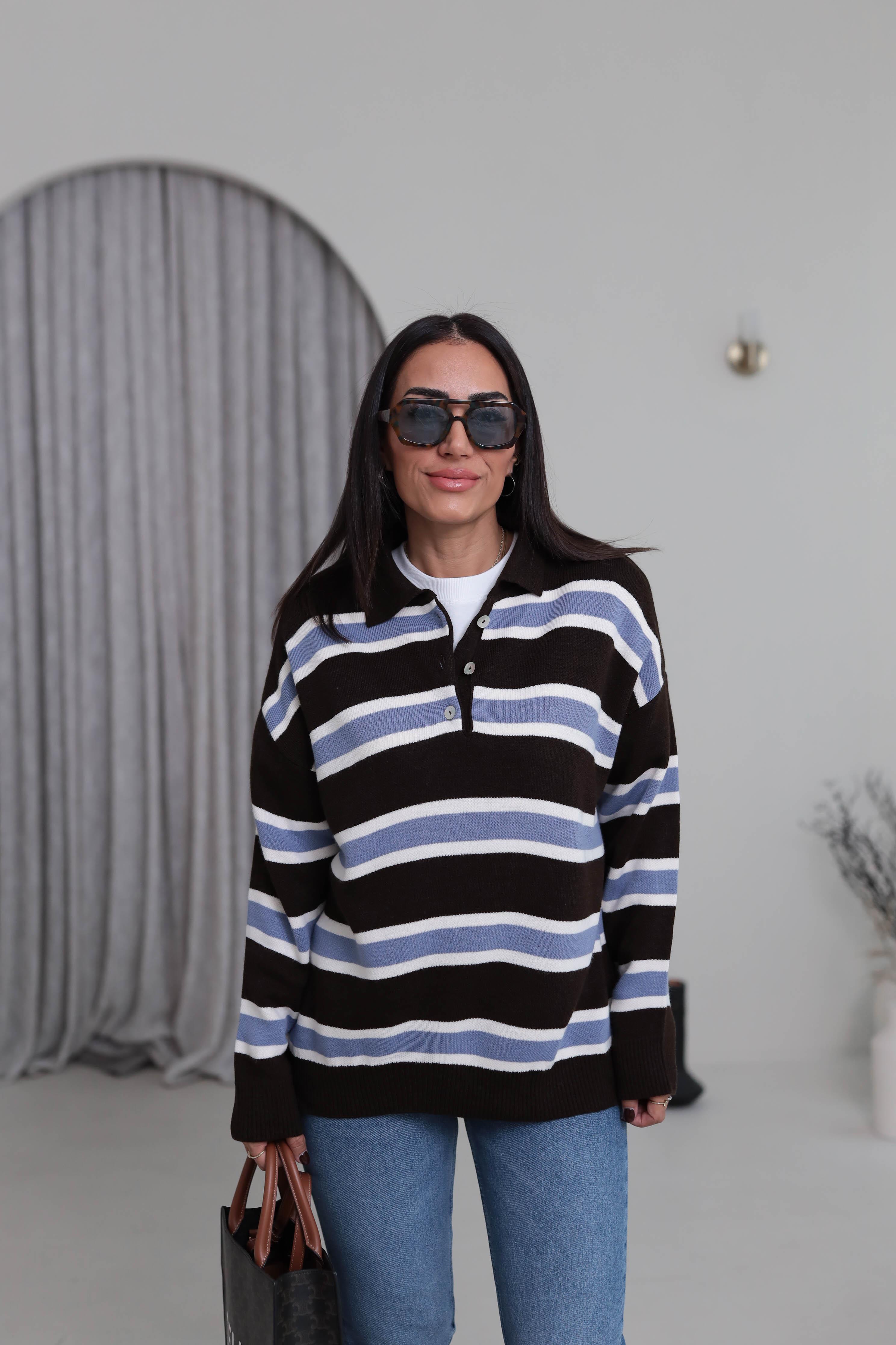1127 Polo Yaka Şeritli Triko ACI KAHVE (P-000007494)