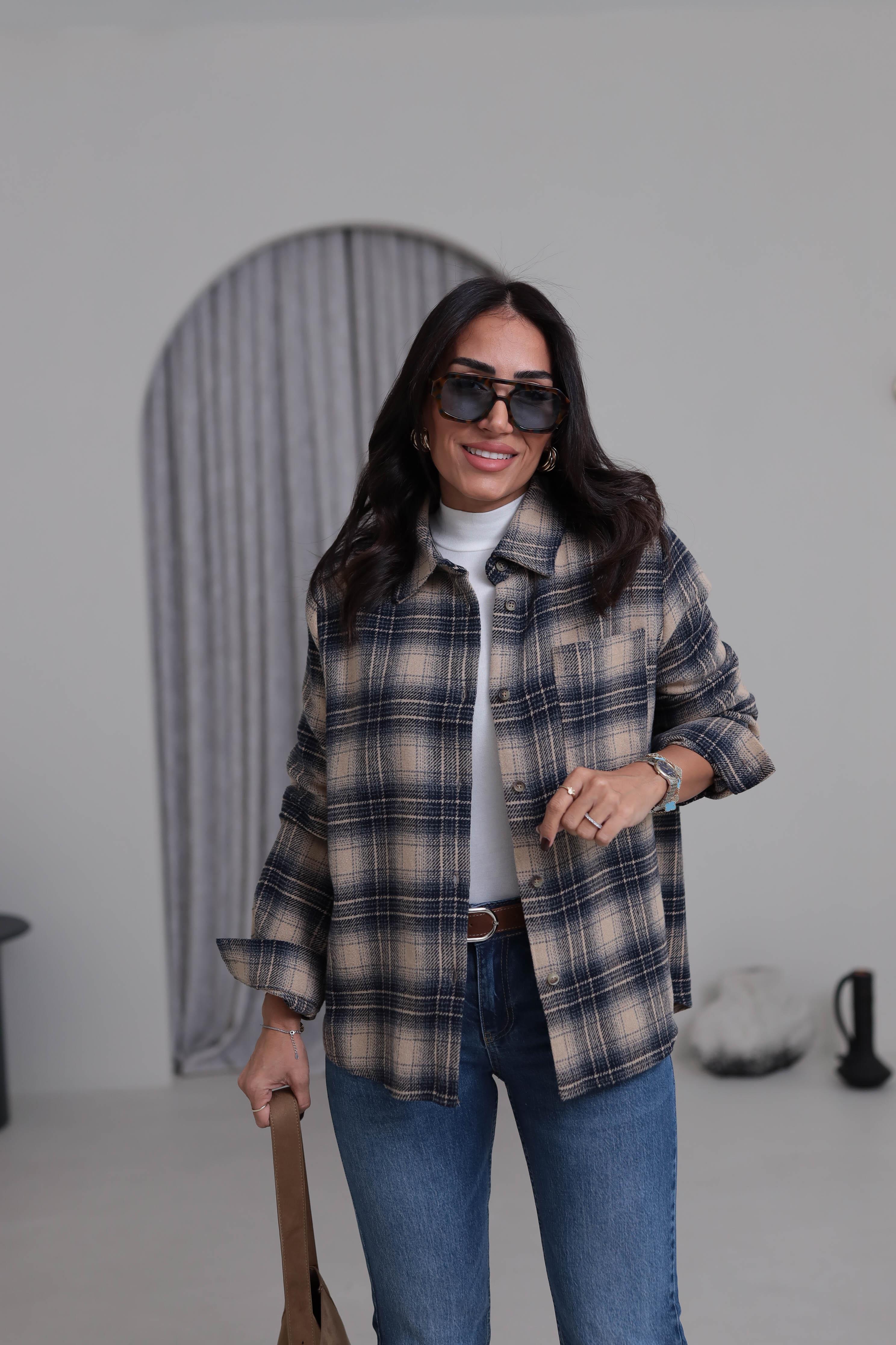 1251 Sırt Yazı Detaylı Oduncu Gömlek BEJ (P-000007476)