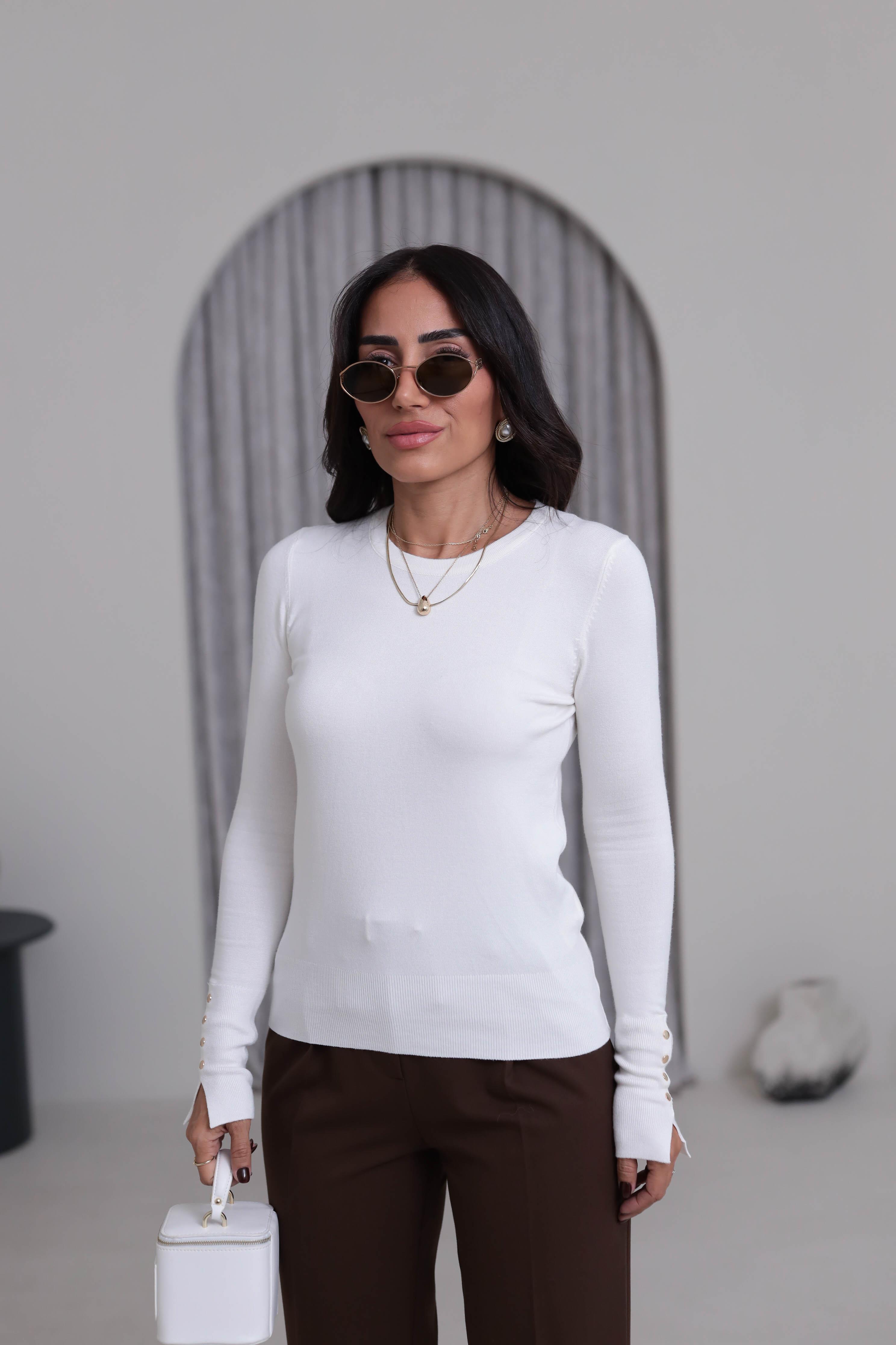 1267 Bisiklet Yaka Droplu Triko Kazak EKRU (P-000007298)