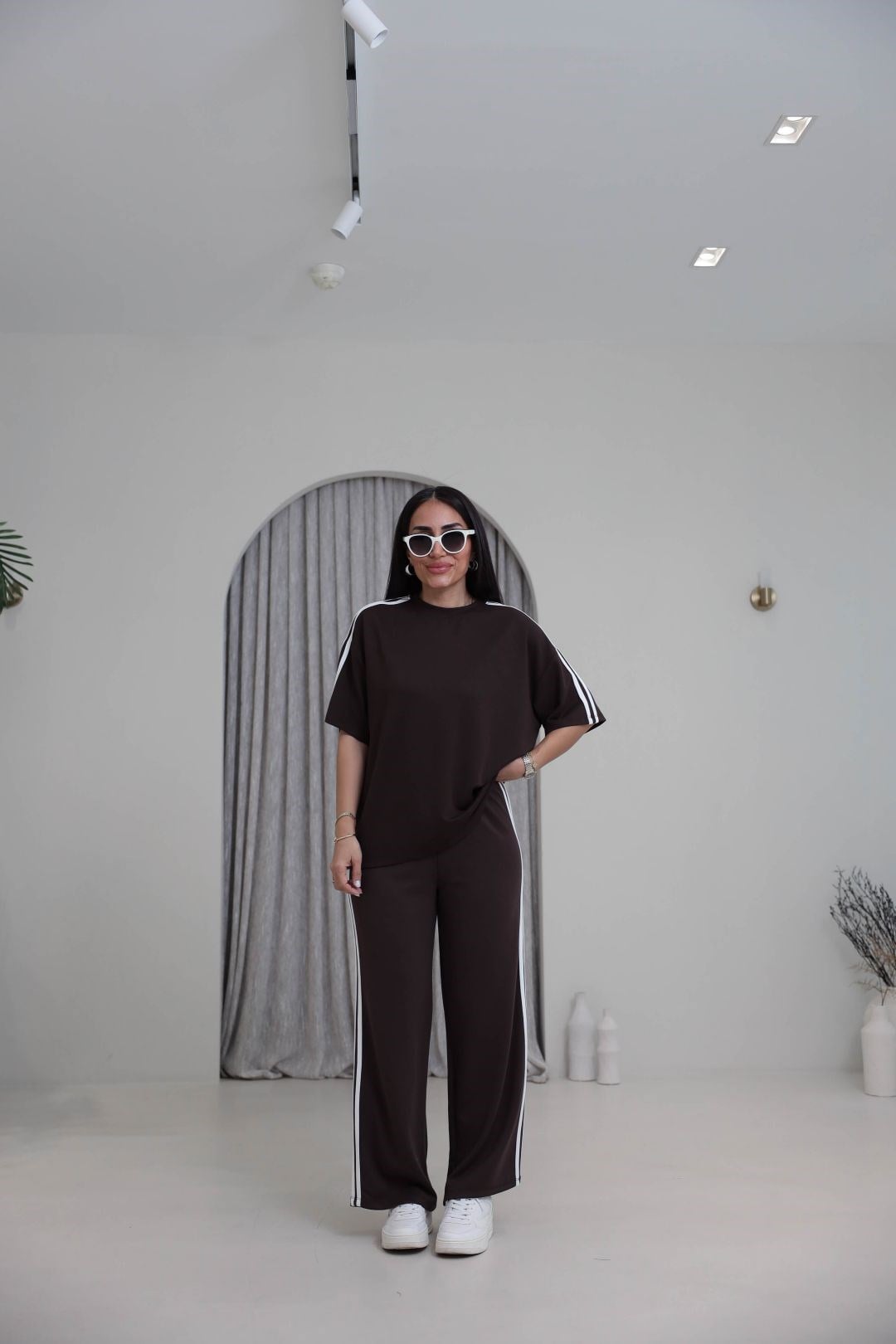1602 Bisiklet Yaka Çizgi Detaylı Eşofman Takımı KAHVE