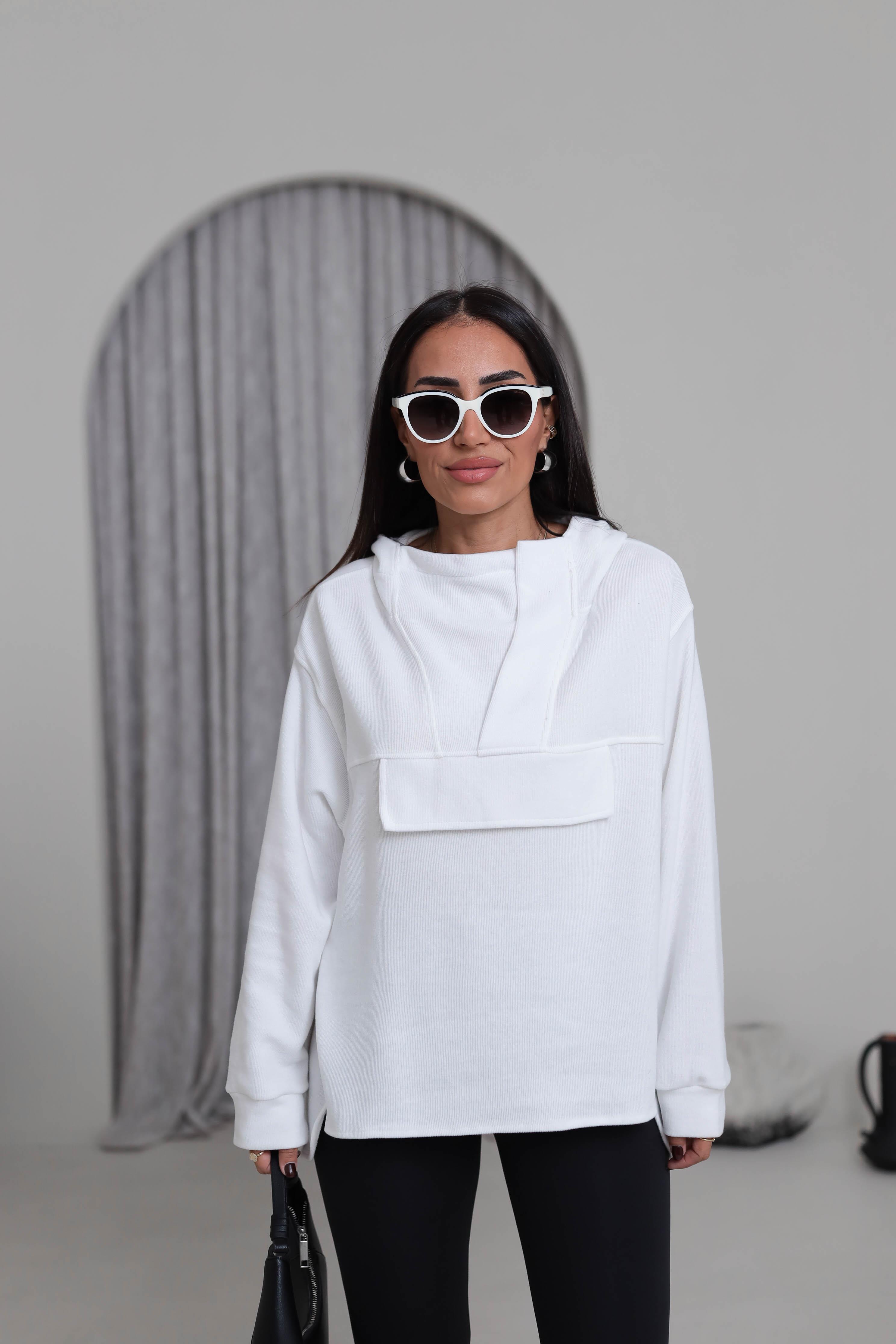1750 Yaka Detay Selanik Kapşonlu Sweatshirt BEYAZ (P-000007222)