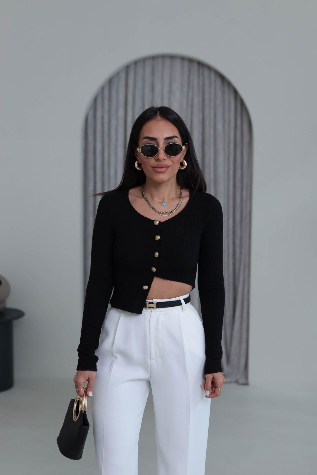 2074 Fitilli Triko Gold Düğmeli Hırka SİYAH