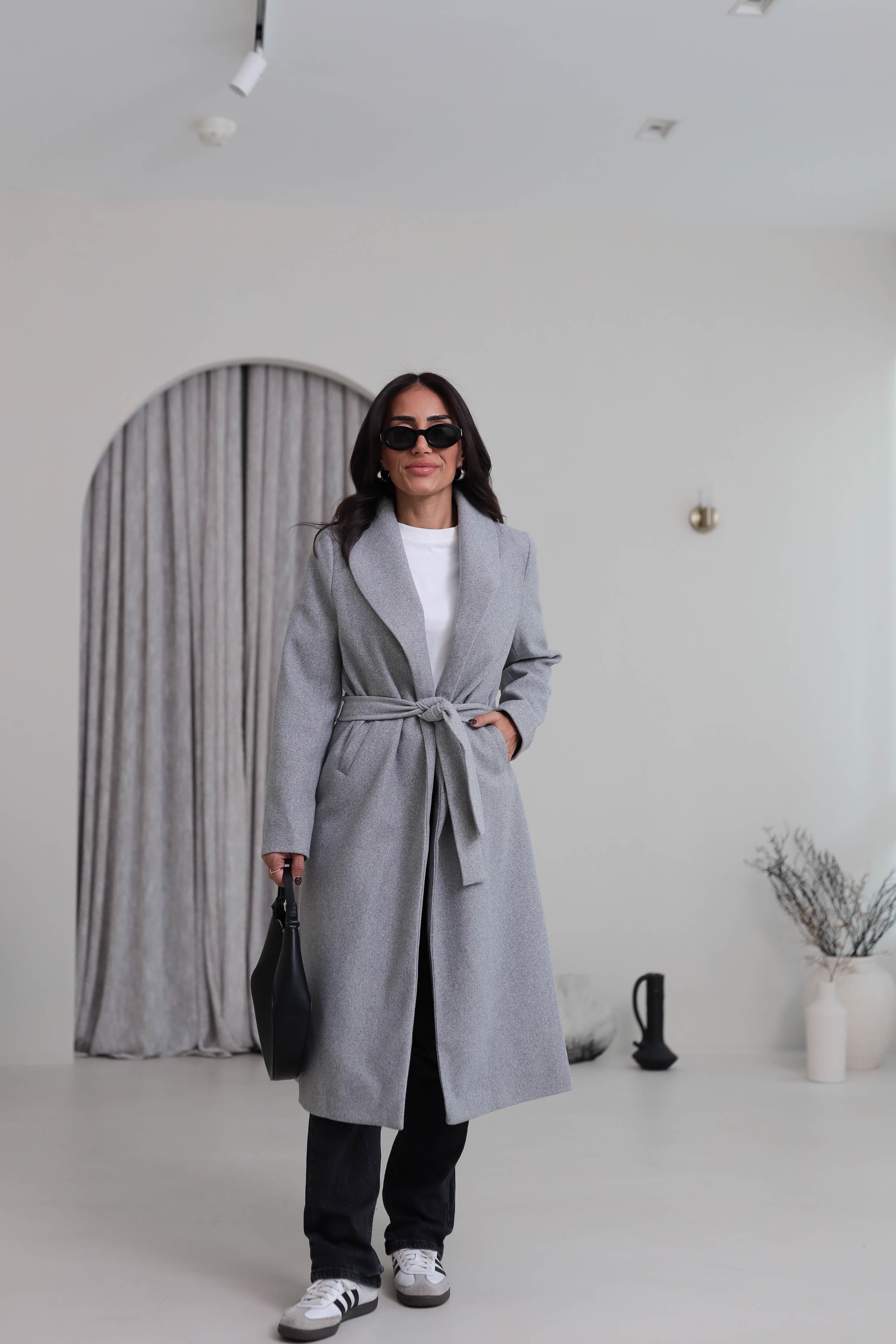 2173 Kuşaklı Kaşe Ceket GRİ (P-000007508)