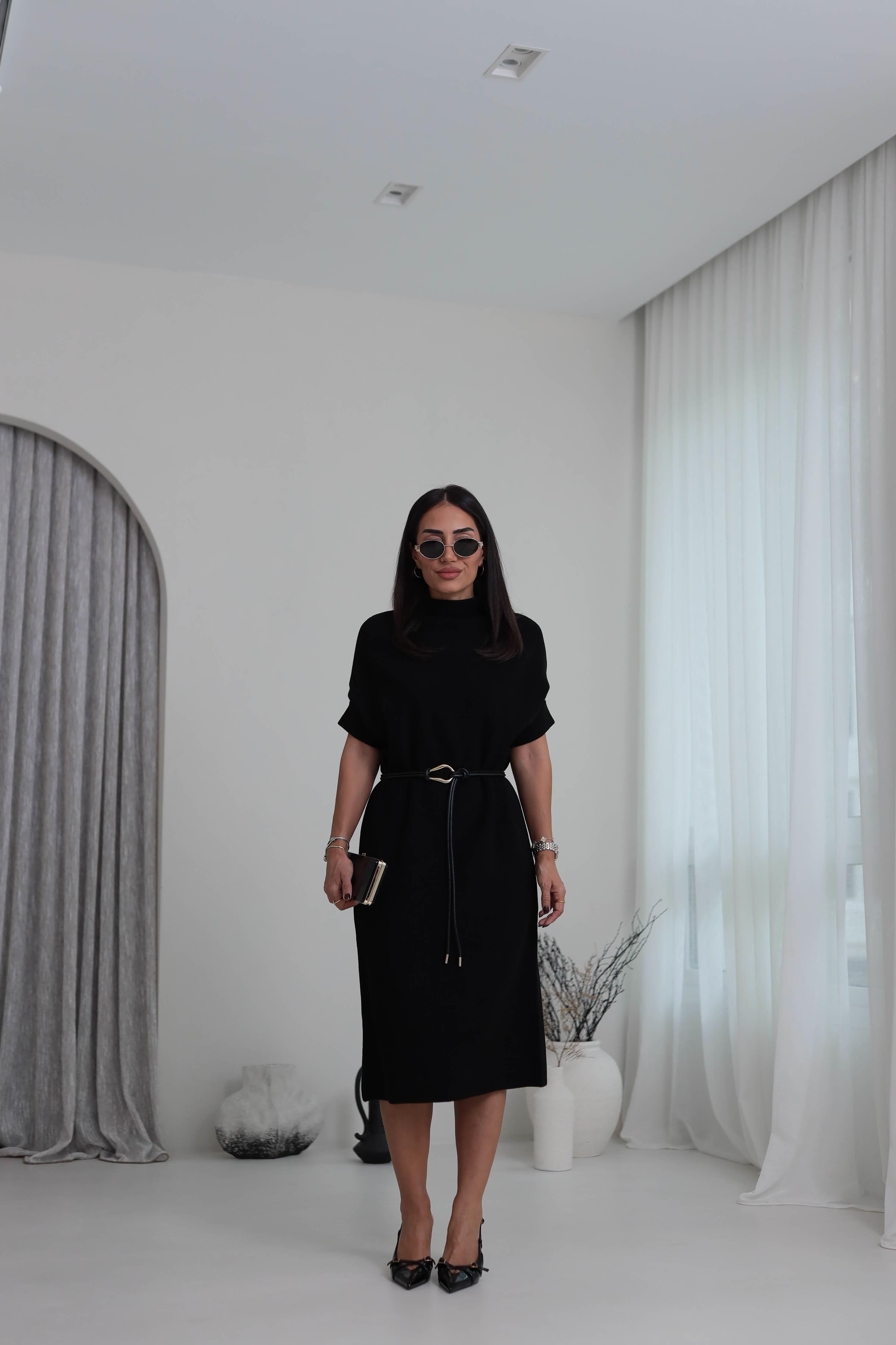 2548 Kemer Detaylı Triko Elbise SİYAH (P-000007458)