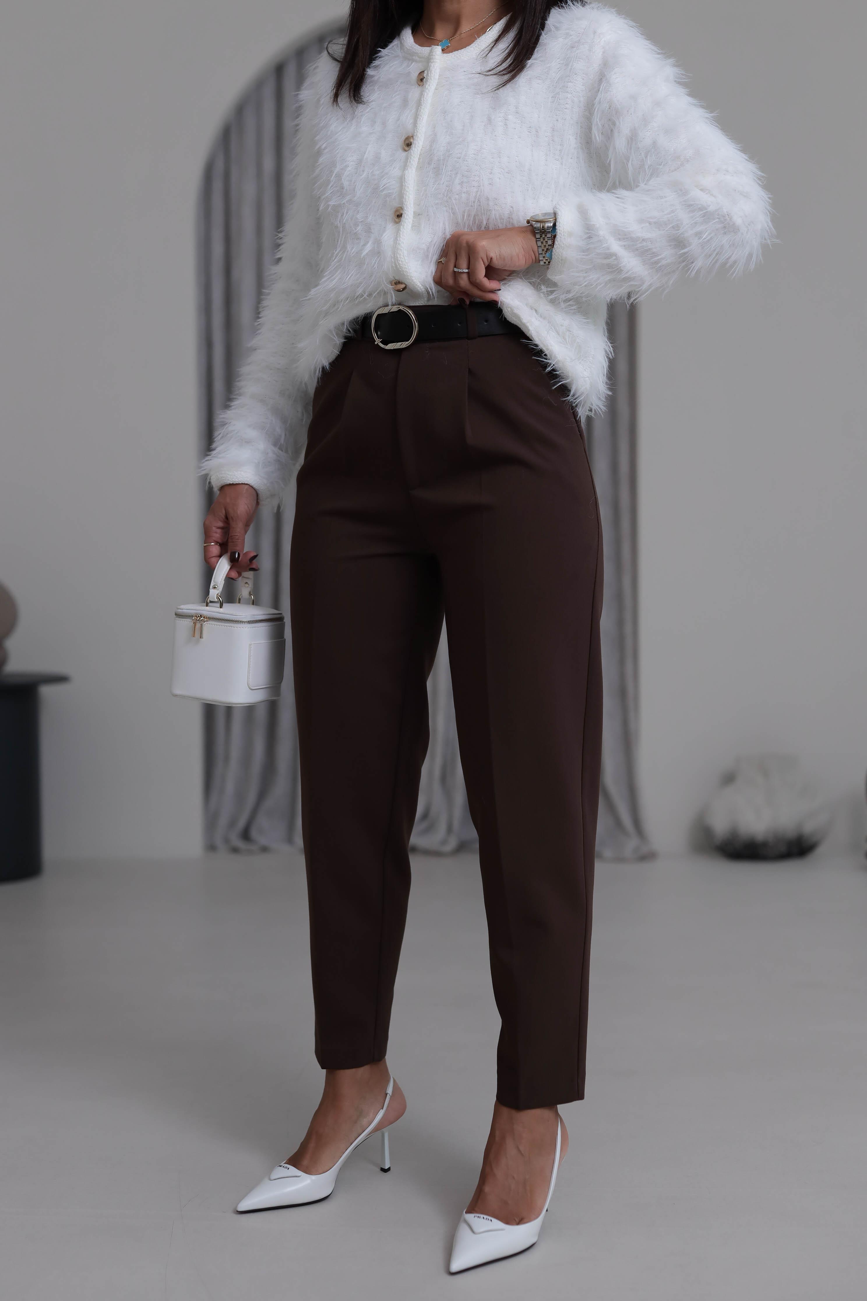 2679 Köprülü Kemer Detaylı Kumaş Pantolon KAHVE (P-000007460)