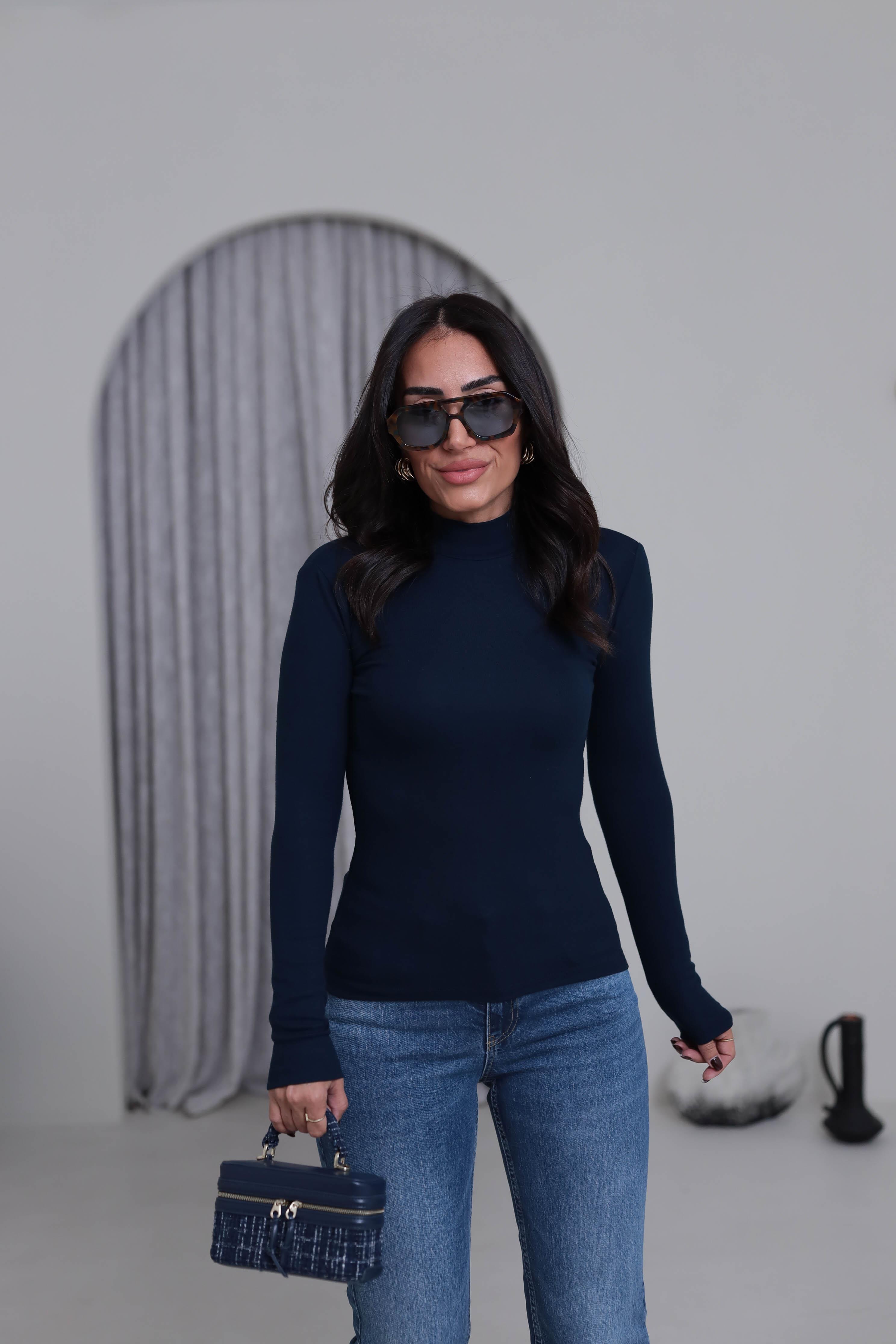 4144 Balıkçı Yaka Uzun Kol Bluz LACİVERT (P-000007487)
