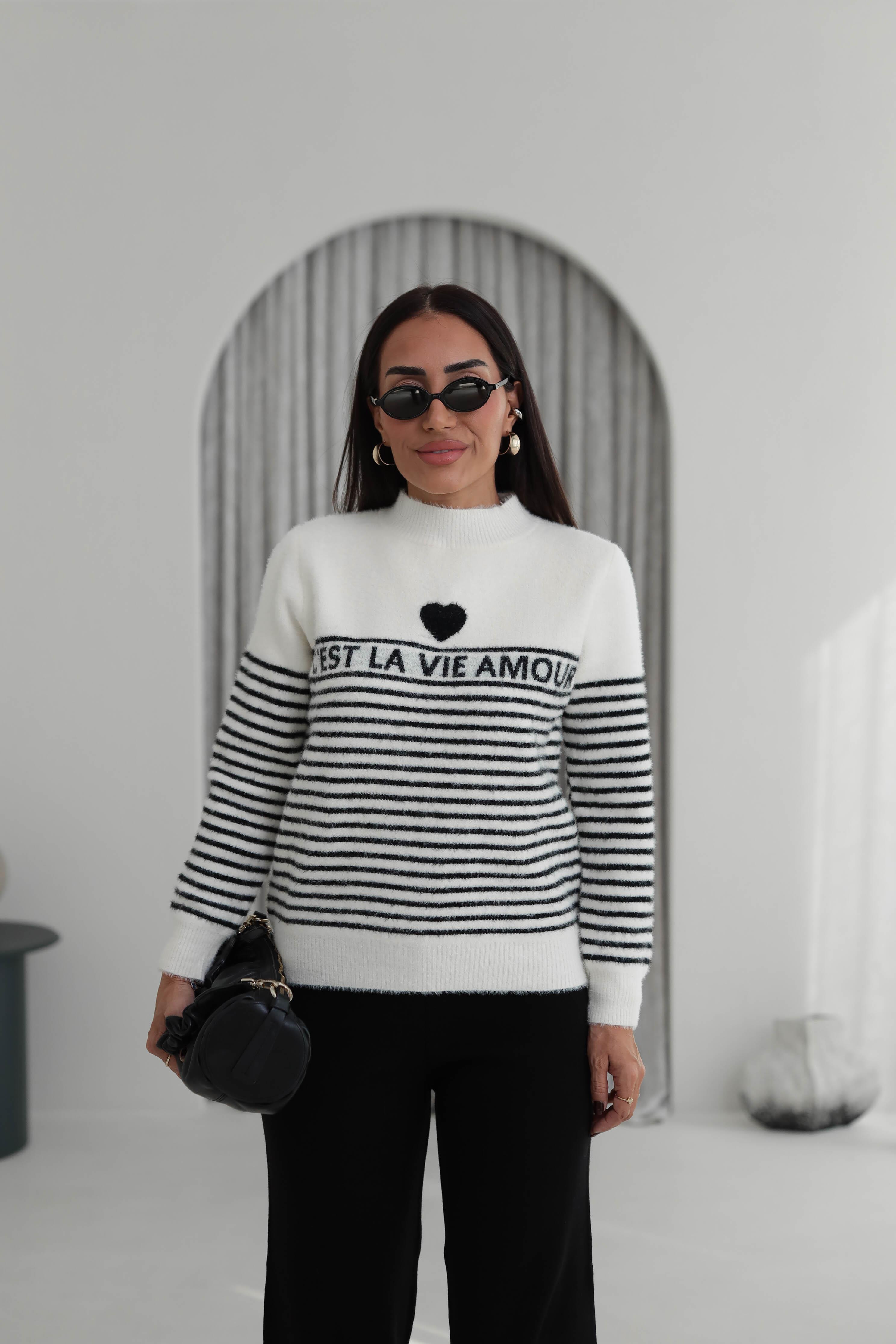 4817 Amour Çizgili Angora Kazak SİYAH (P-000007365)
