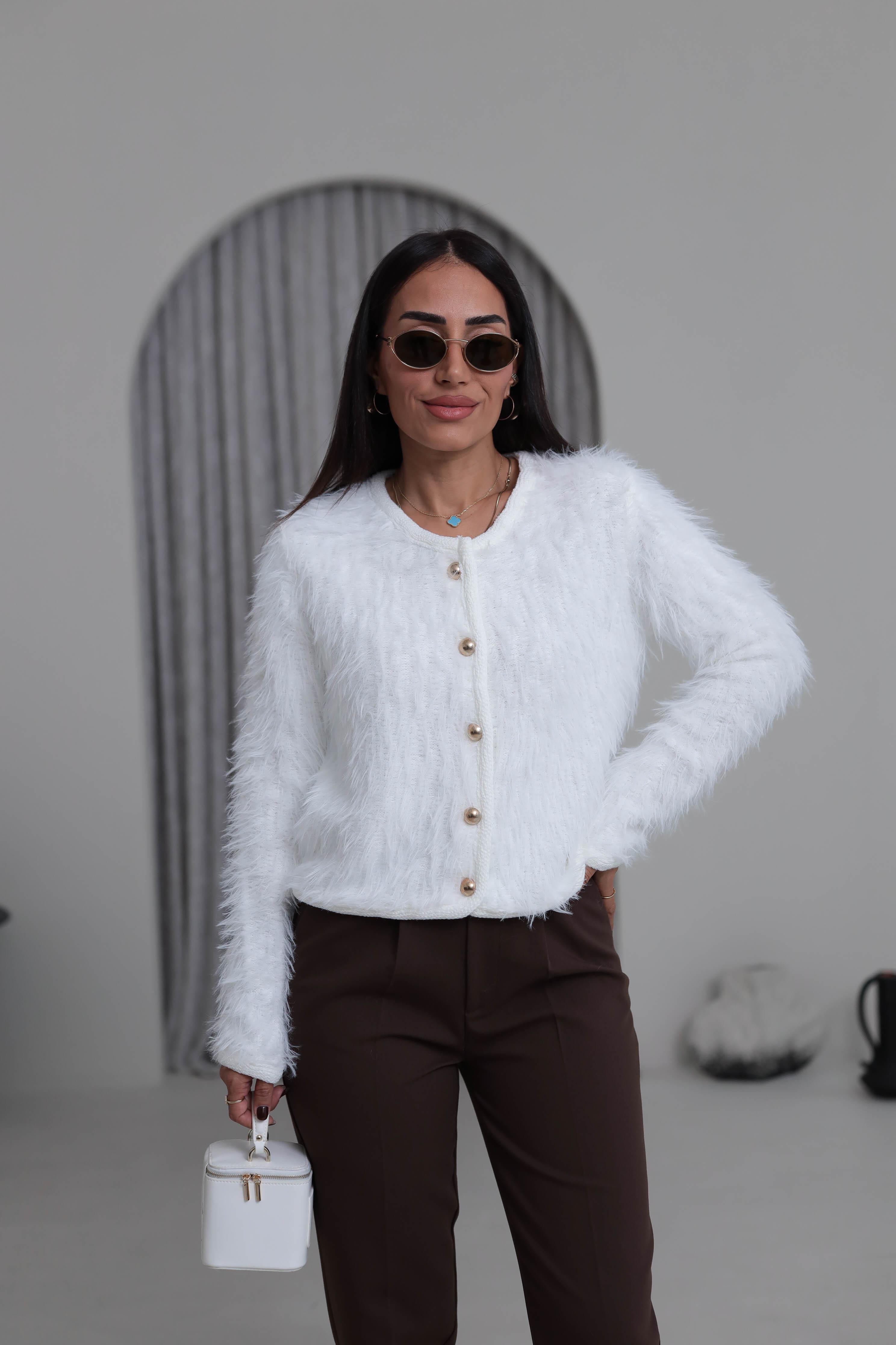 4938 Gold Düğme Detaylı Sakalı Hırka EKRU (P-000007429)