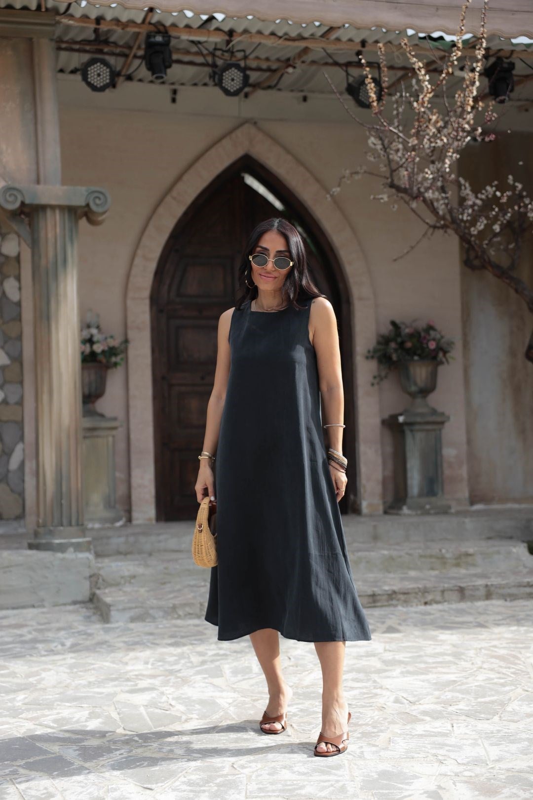 5007 Sıfır Kol Tencel Uzun Elbise FÜME