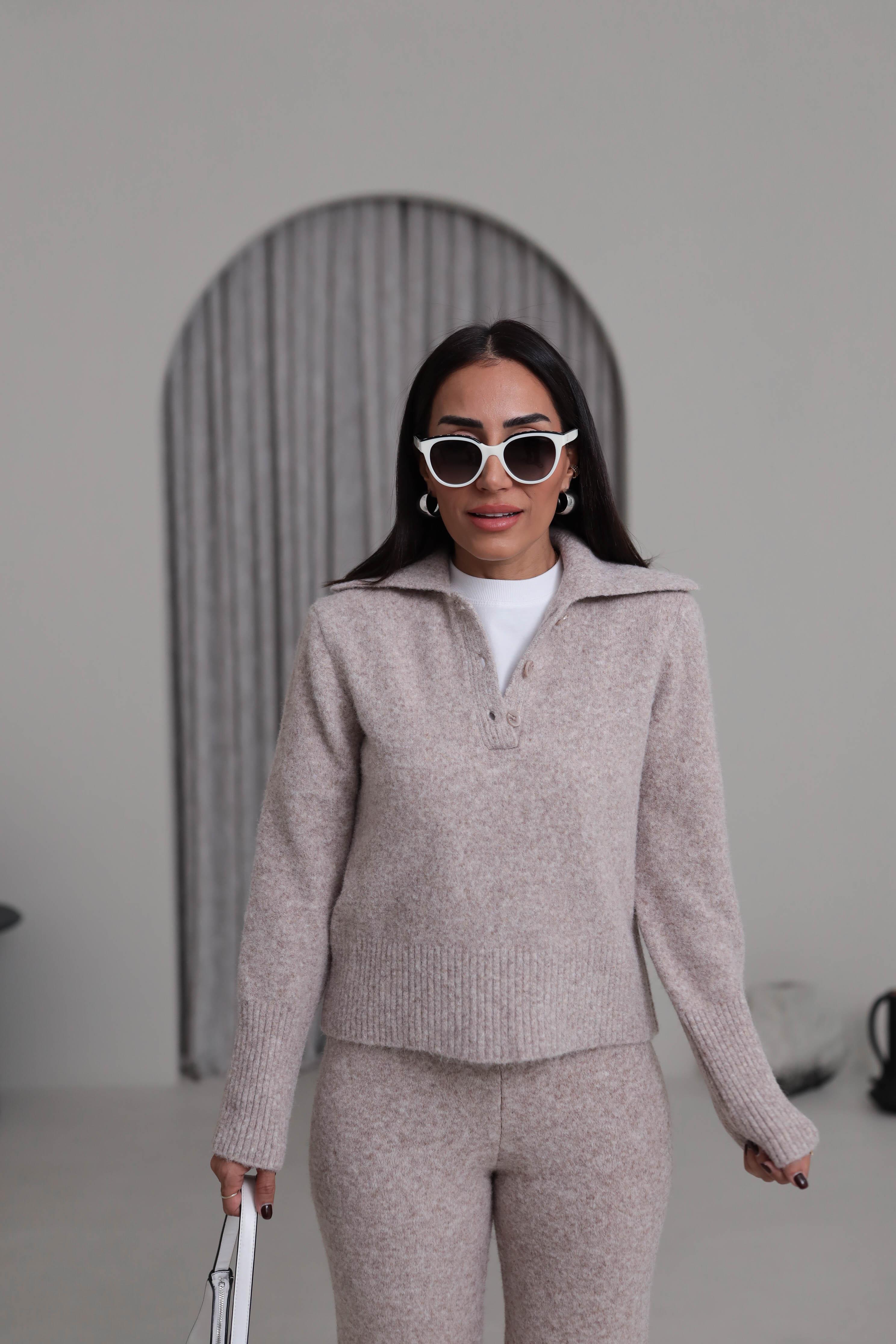 5069 Gömlek Yaka Yarım Düğmeli Kazak VİZON (P-000007516)