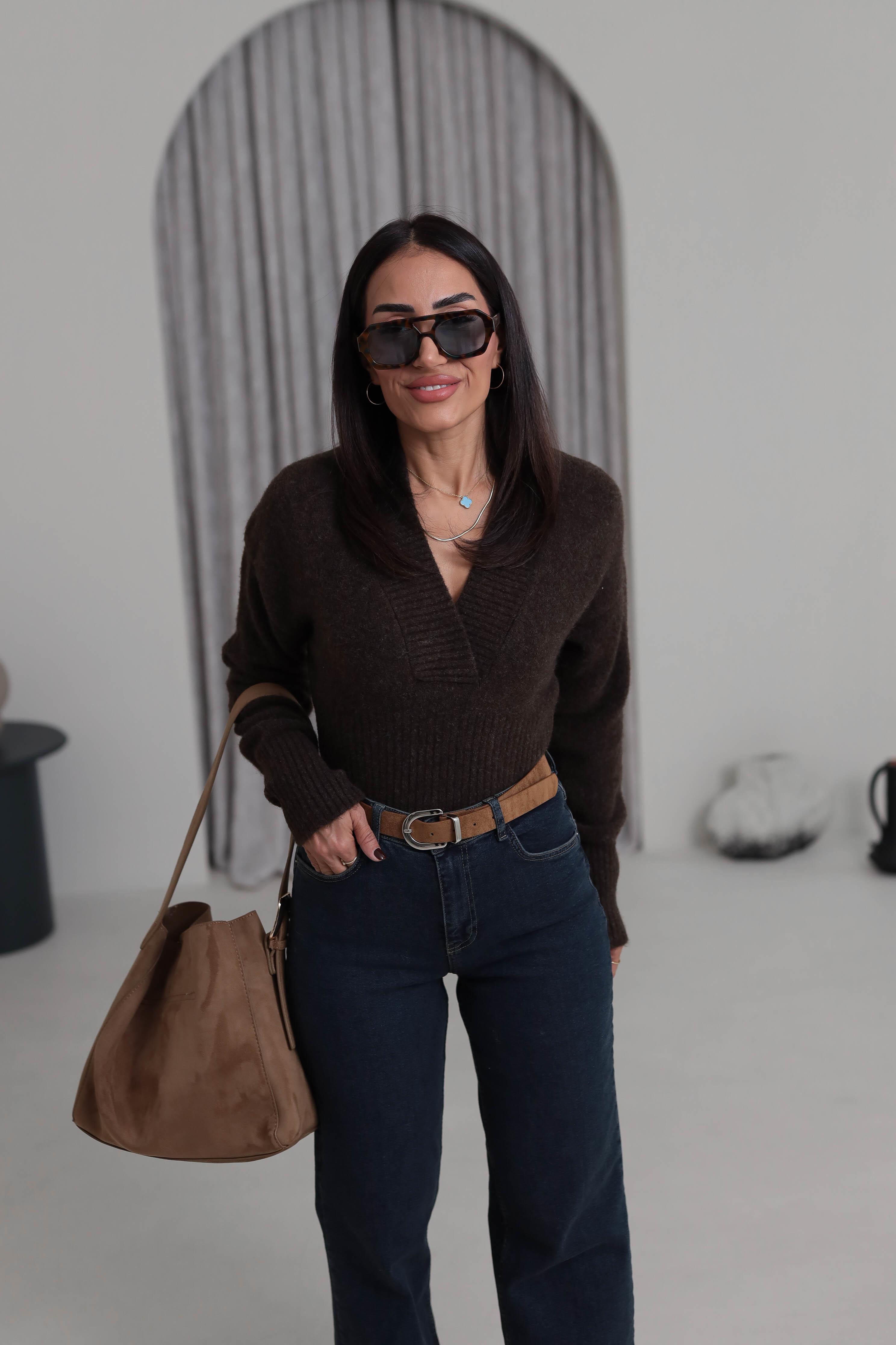 5080 Yaka Detaylı Yumoş Triko ACI KAHVE (P-000007430)