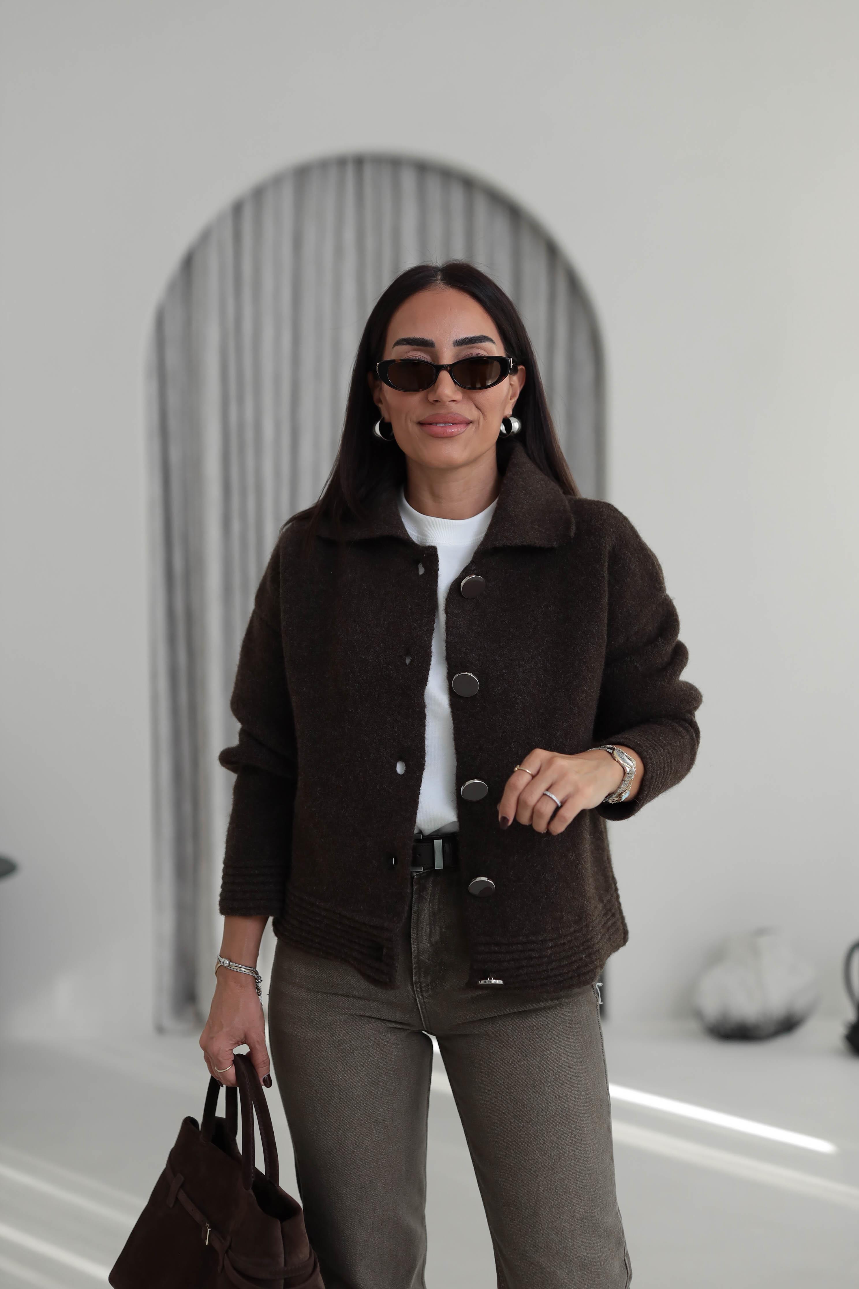 5086 Büyük Düğmeli Polo Yaka Hırka Ceket ACI KAHVE (P-000007463)