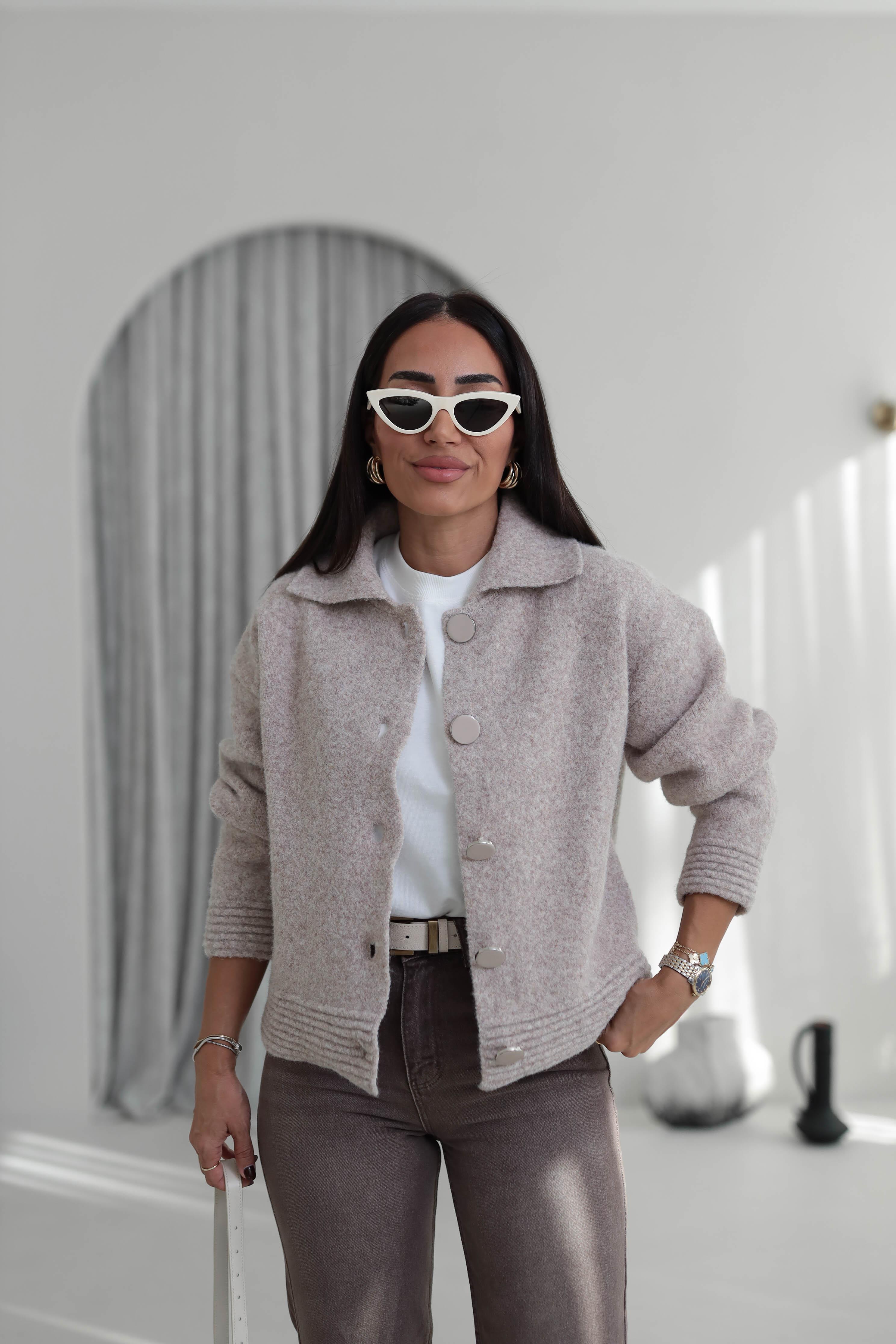 5086 Büyük Düğmeli Polo Yaka Hırka Ceket VİZON (P-000007463)