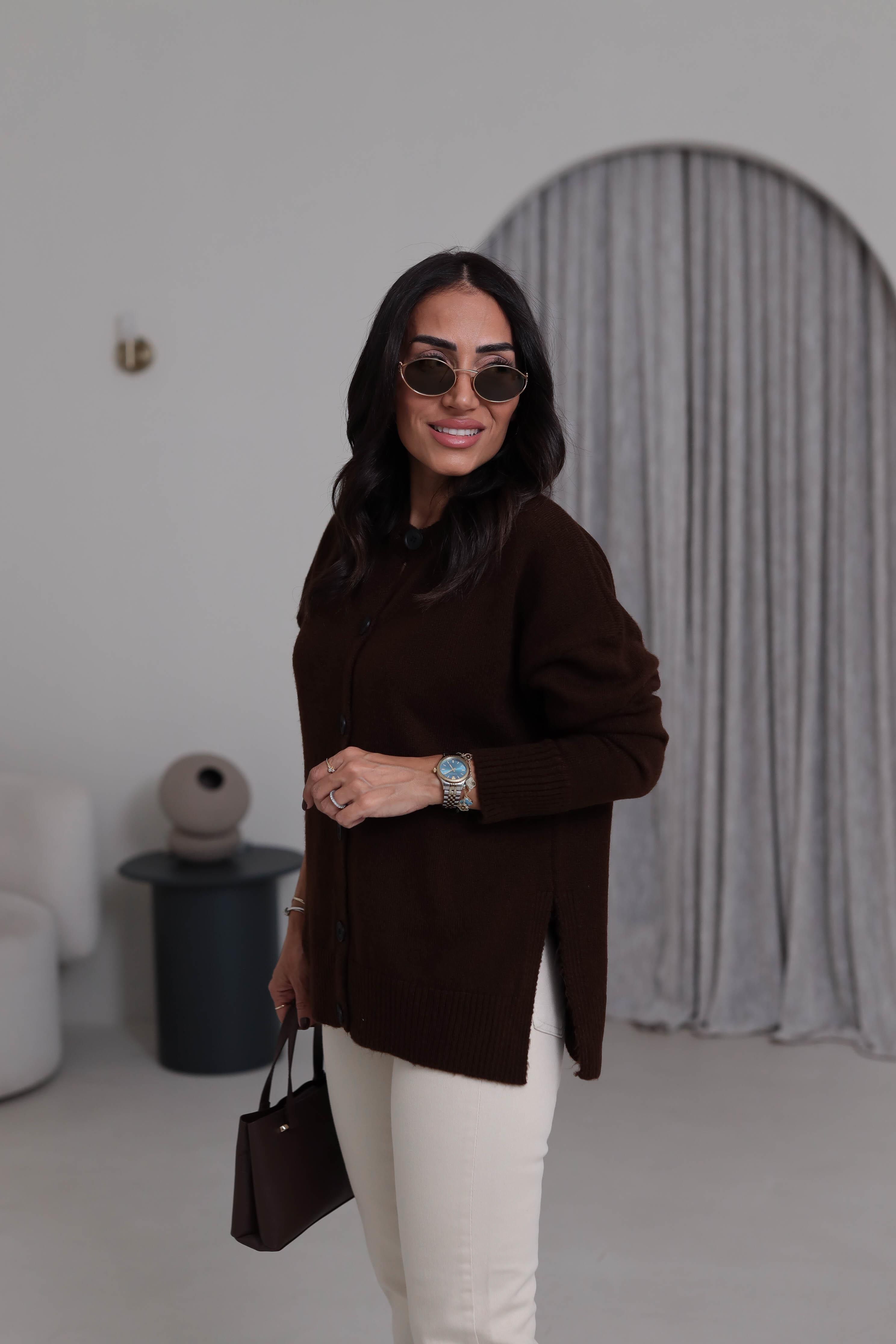 5252 Yanları Yırtmaç Detay Hırka KAHVE (P-000007424)