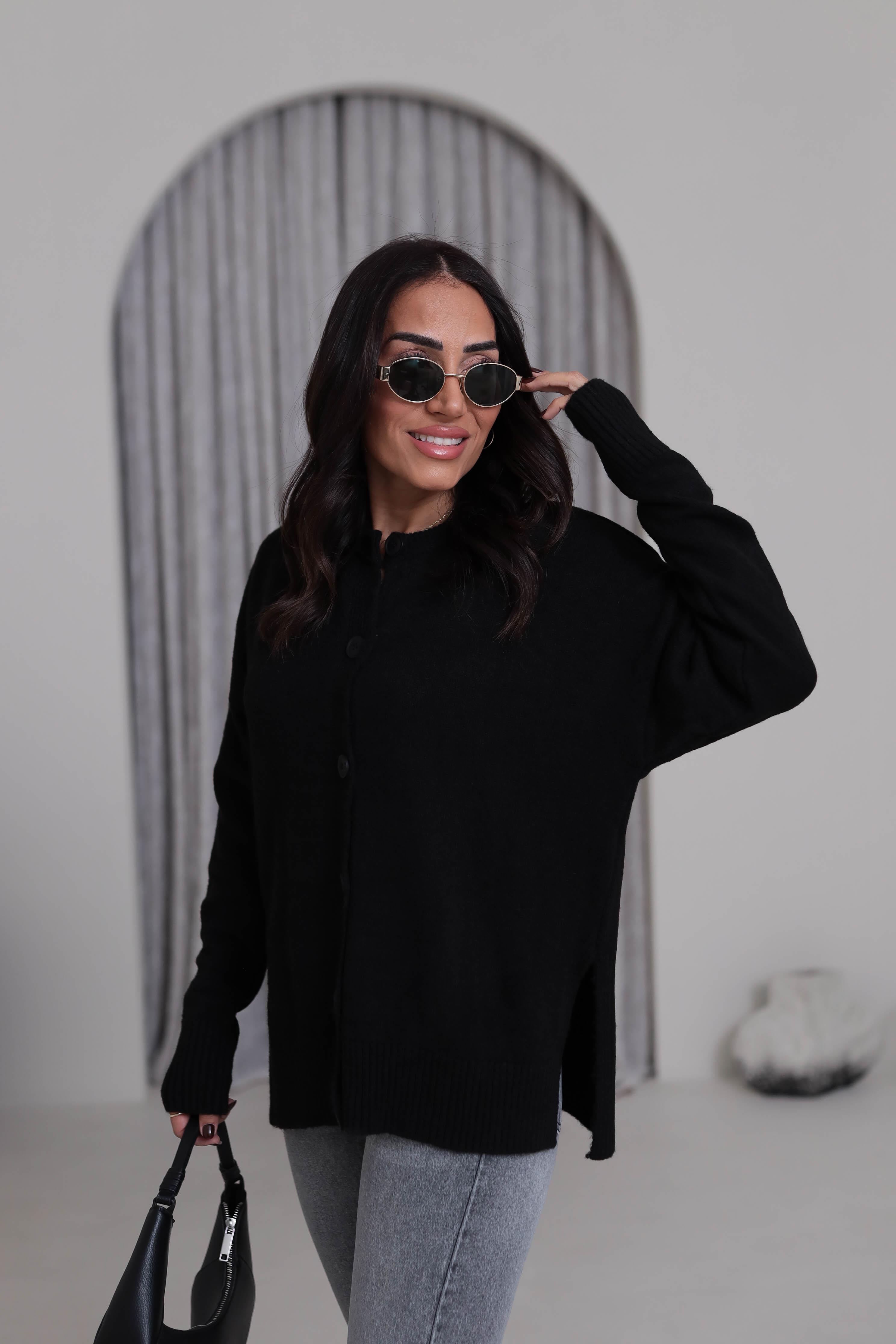 5252 Yanları Yırtmaç Detay Hırka SİYAH (P-000007424)