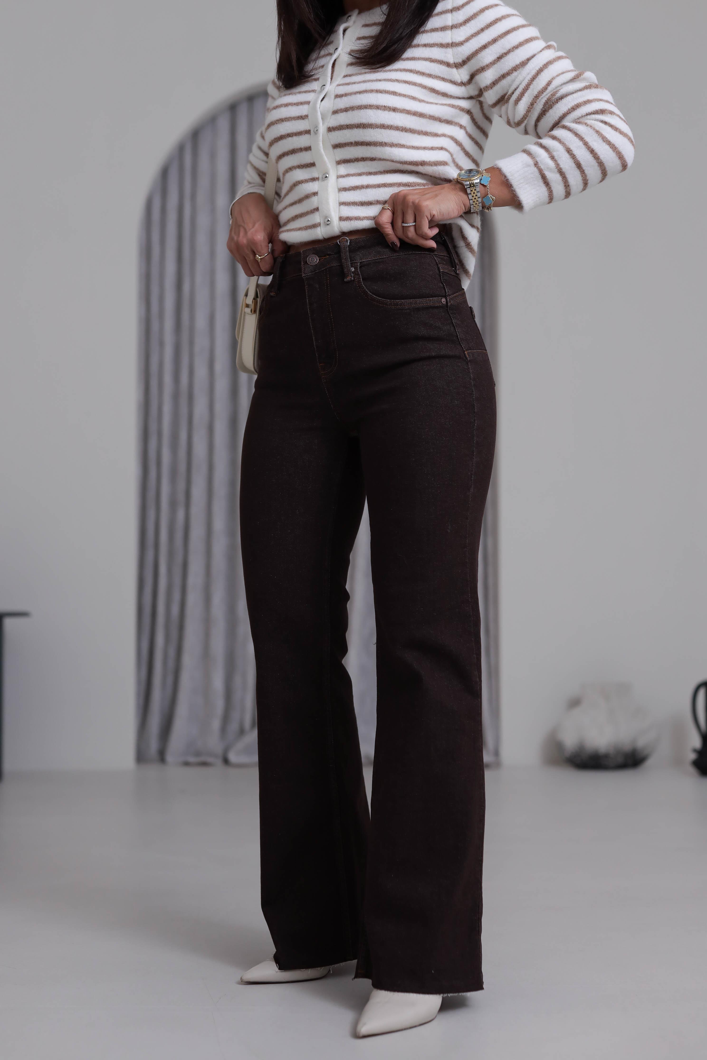 5695 Lazer Kesikli Push Up Düz Kesim Jean ACI KAHVE (P-000006486)