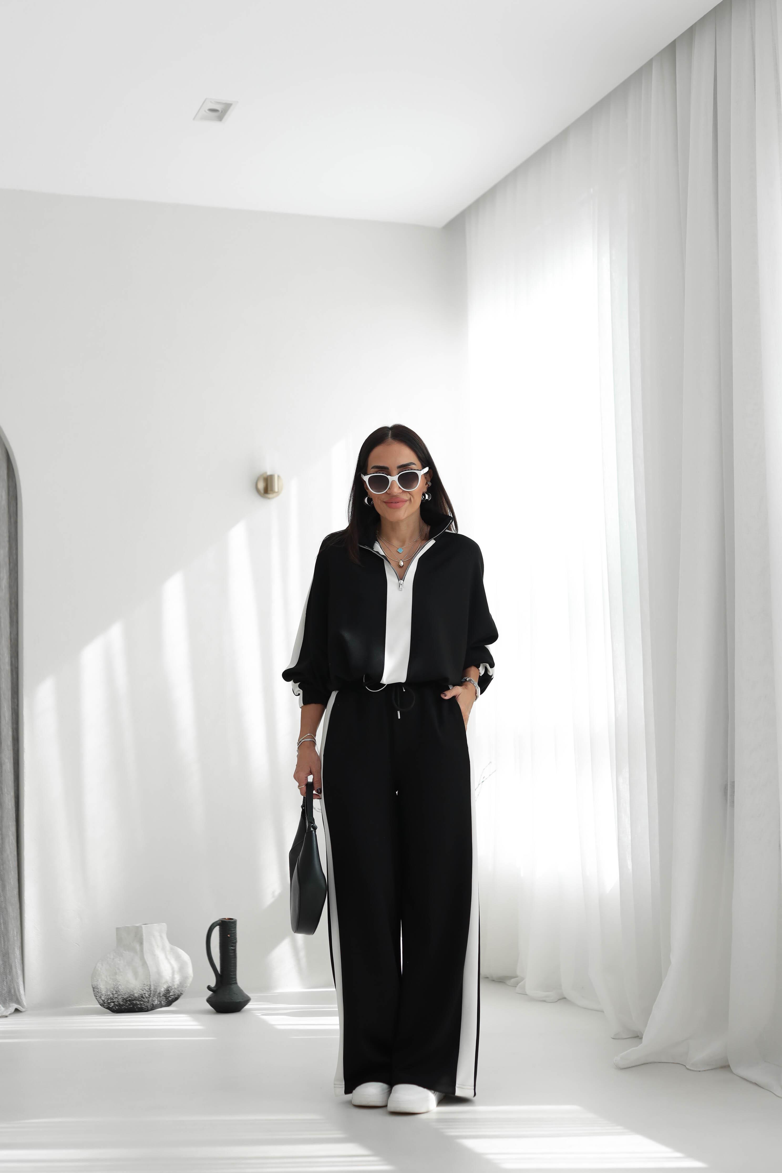 5704 Şerit Detaylı Modal Takım SİYAH (P-000007464)