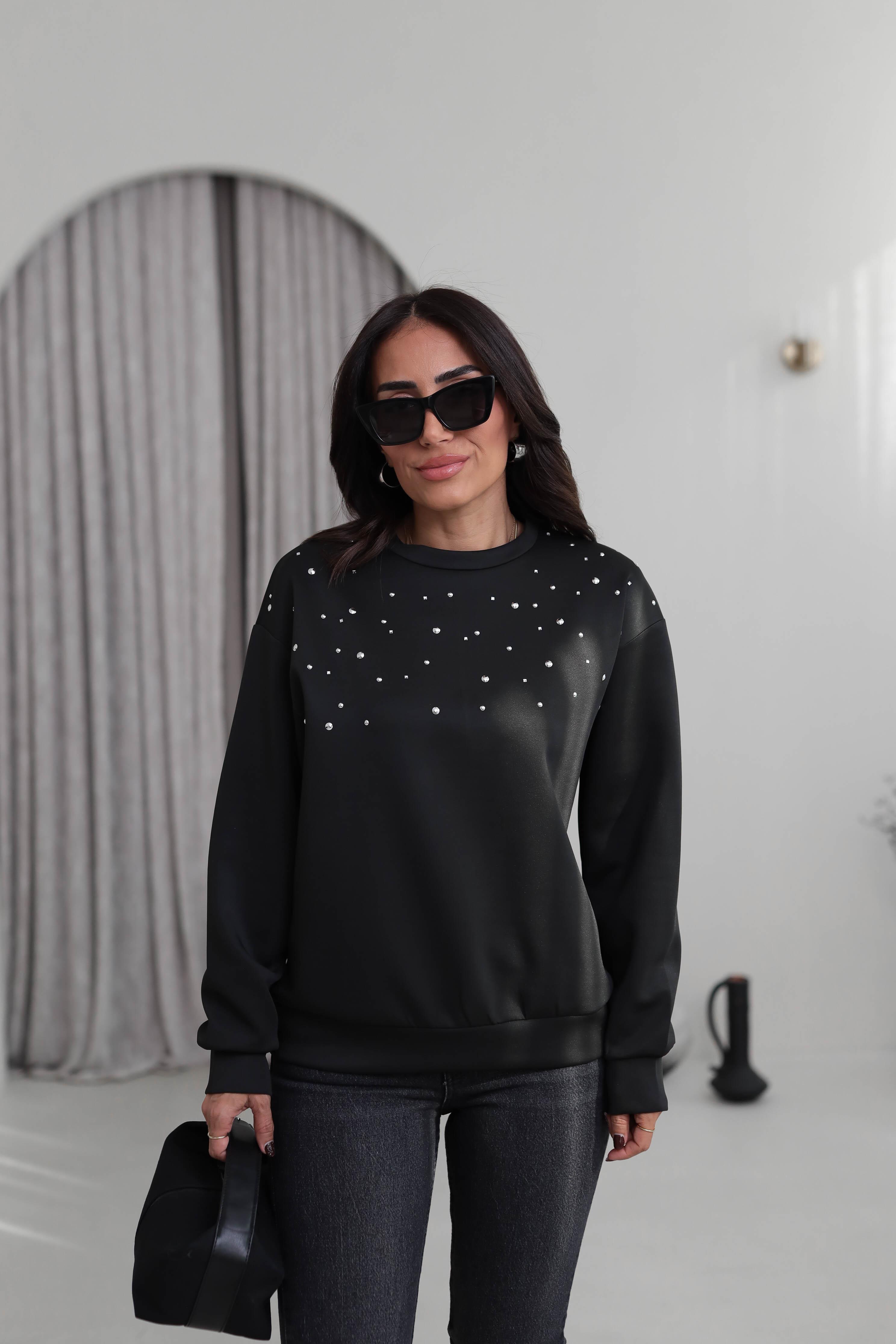 5902 Serpme Taşlı Scuba Sweatshirt SİYAH (P-000007254)