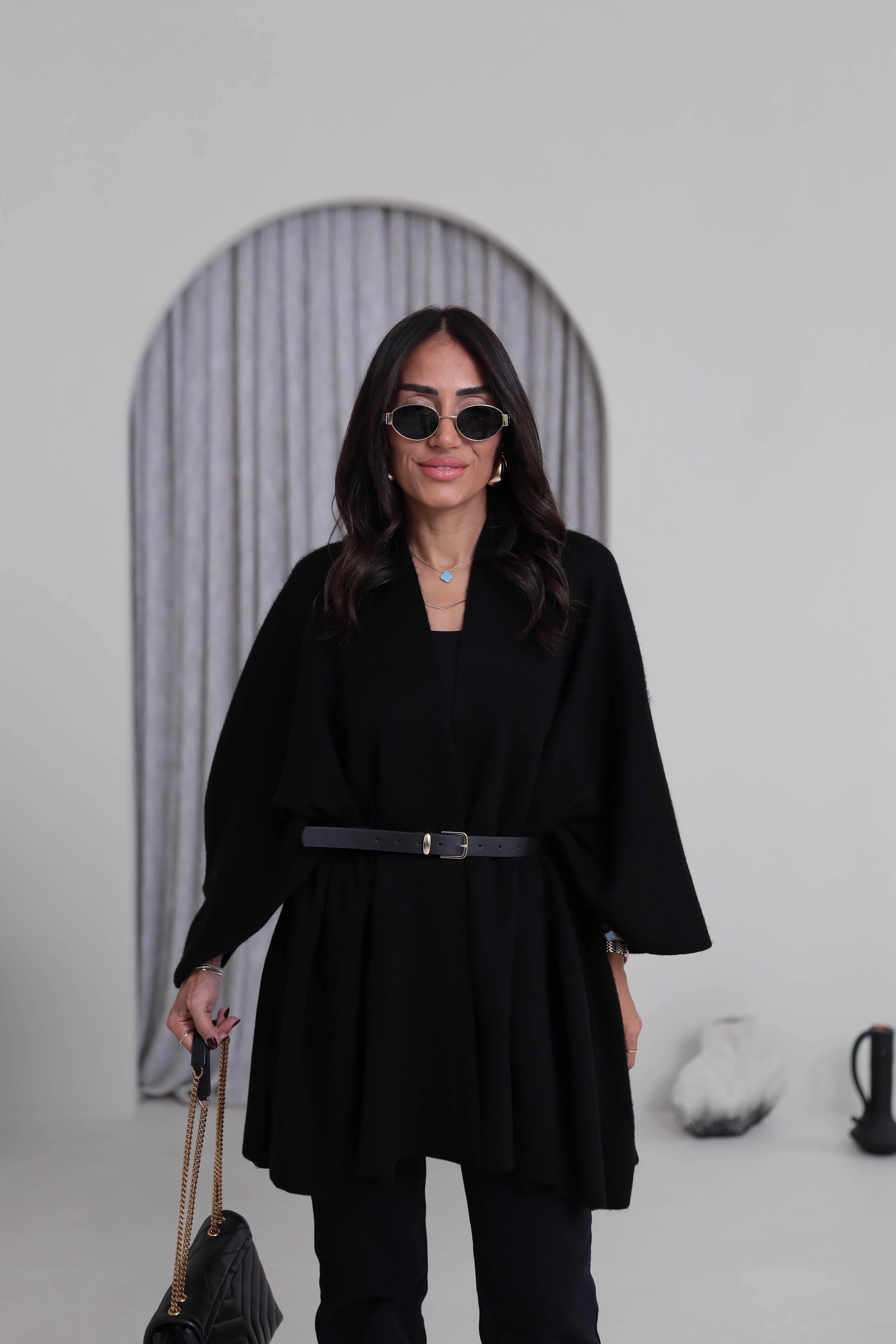 6840 Kemerli Triko Panço Şal SİYAH (P-000007418)