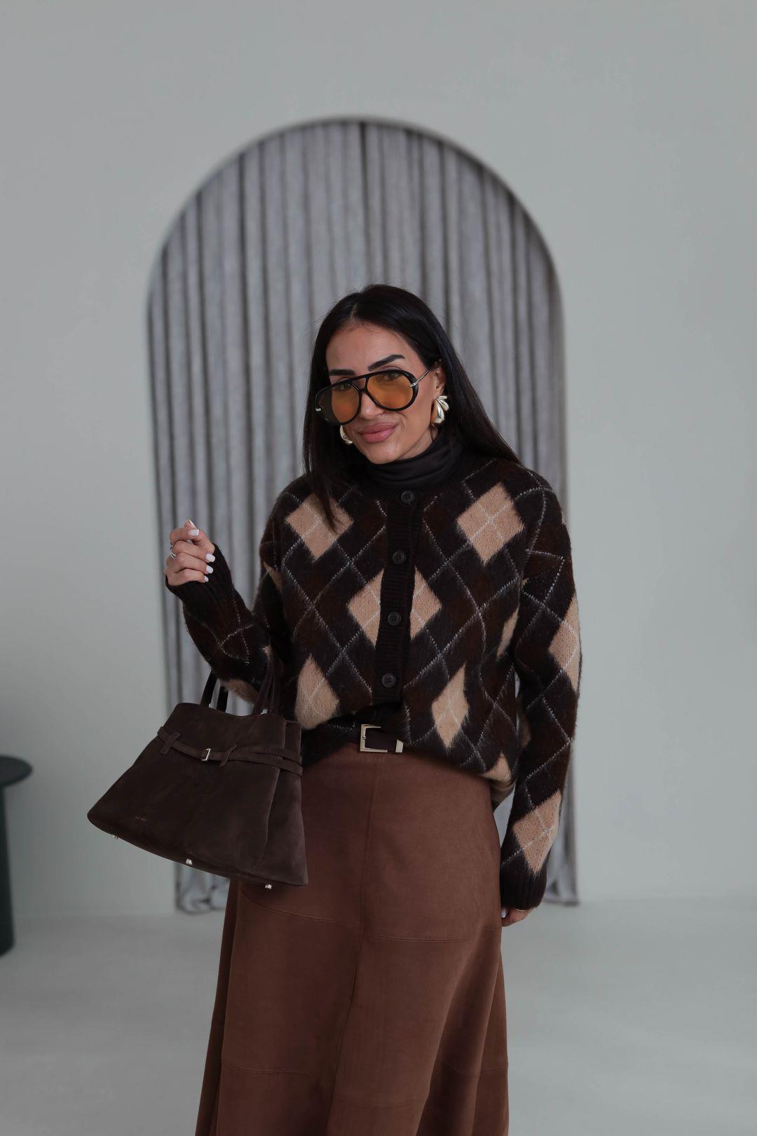 6902 Bisiklet Yaka Baklava Desen Hırka KAHVE