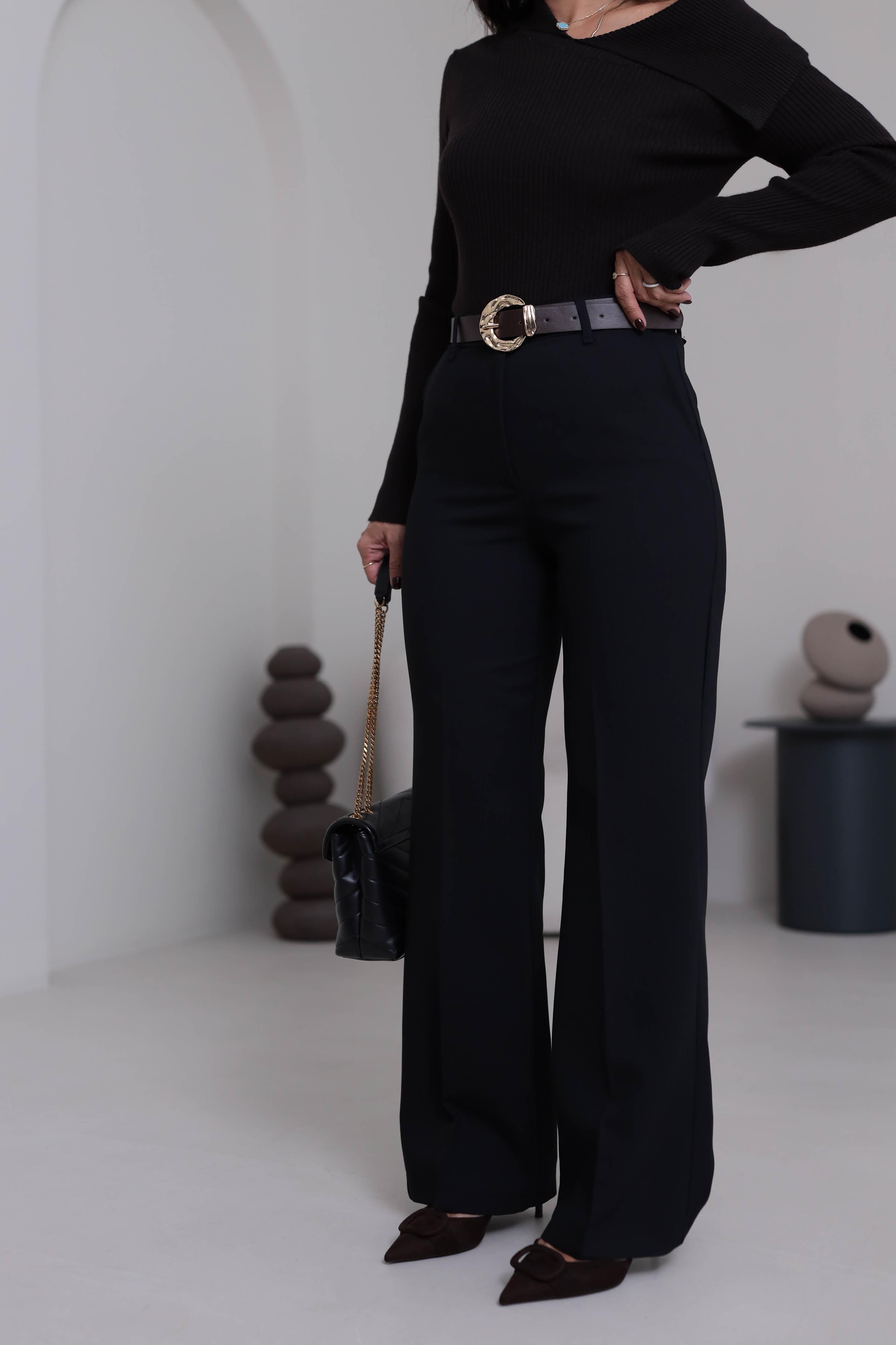 7038 Kemerli Kumaş Pantolon SİYAH (P-000007437)