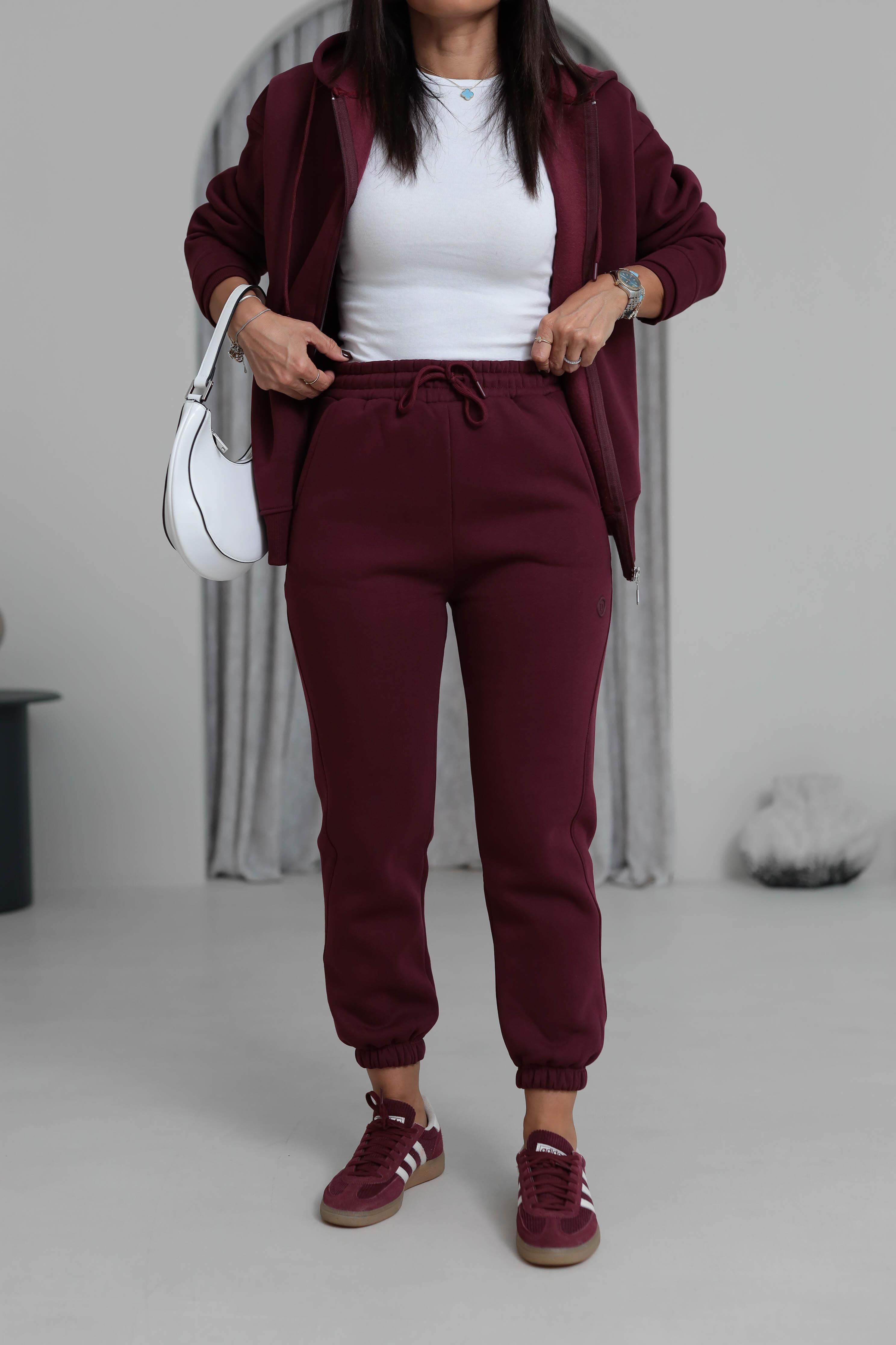 7314 Ribanalı Bel Lastikli 3 iplik Şardonlu Eşofman Altı BORDO (P-000007212)
