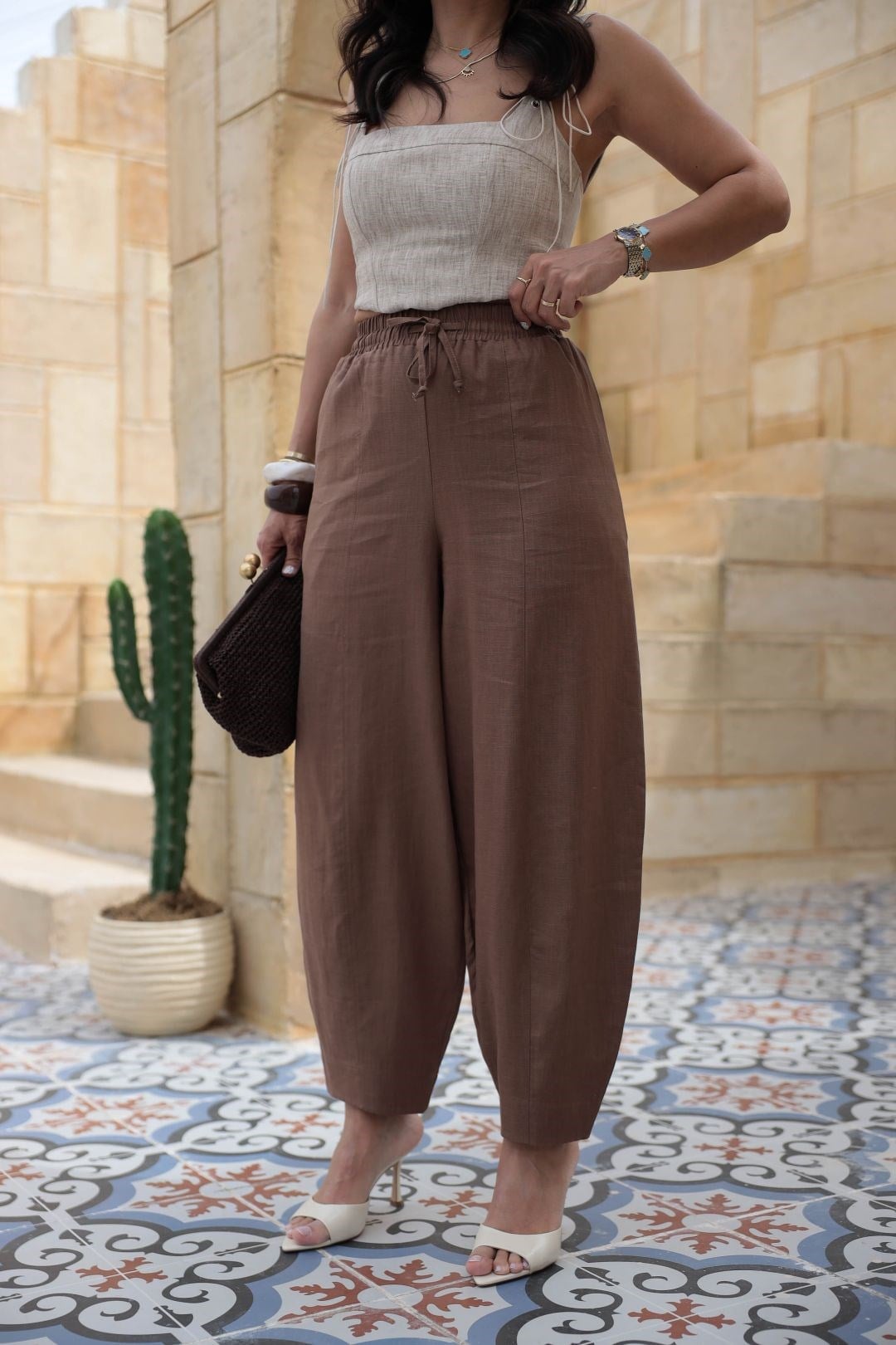 7571 Beli Lastikli Havuç Pantolon KAHVE