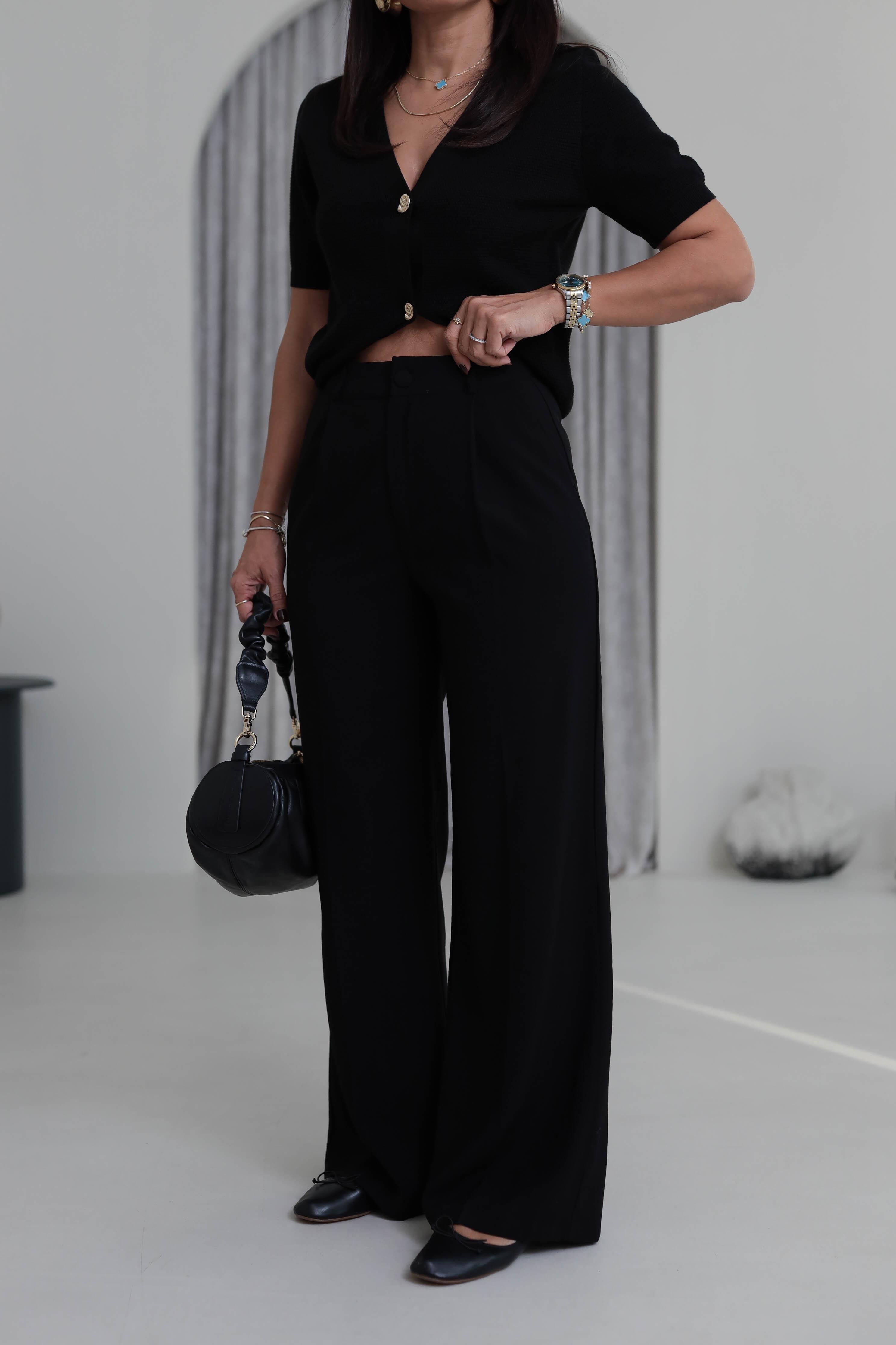 7576 Pileli Bol Paça Pantolon SİYAH (P-000007459)