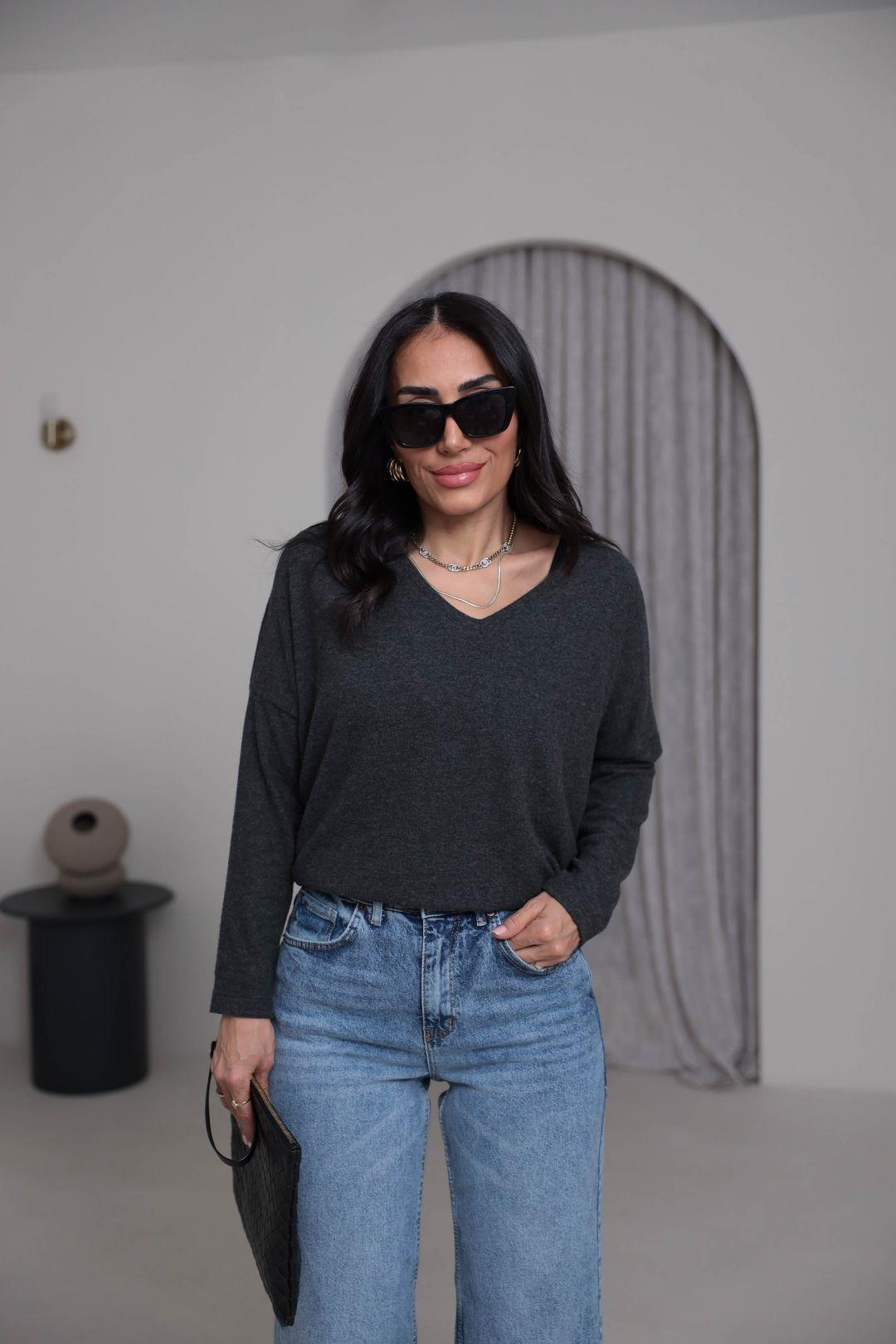 7590 V Yaka Yumoş Bluz ANTRASİT