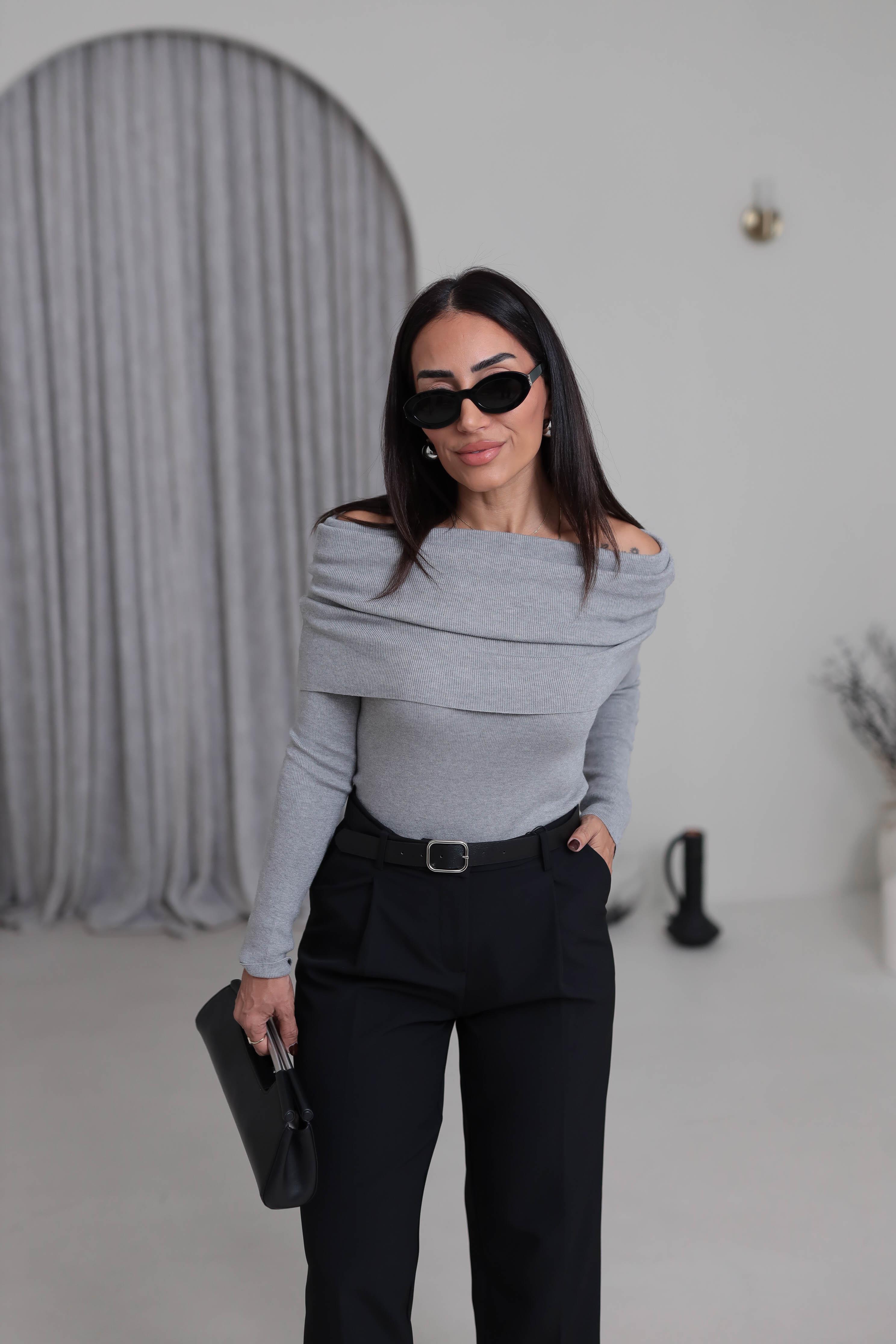 7687 Madonna Yaka Yumuşak Dokulu Triko GRİ (P-000007467)