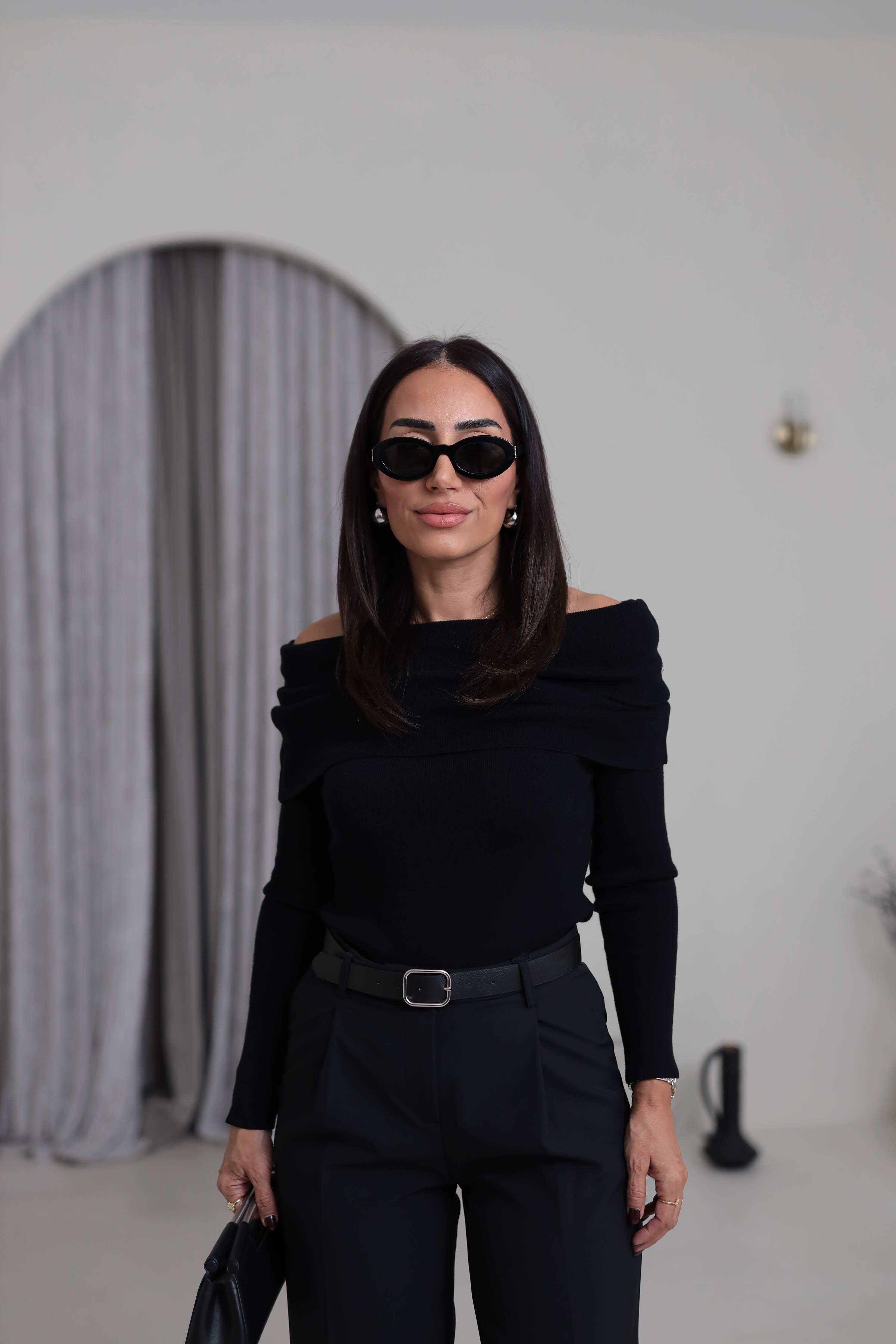 7687 Madonna Yaka Yumuşak Dokulu Triko SİYAH (P-000007467)