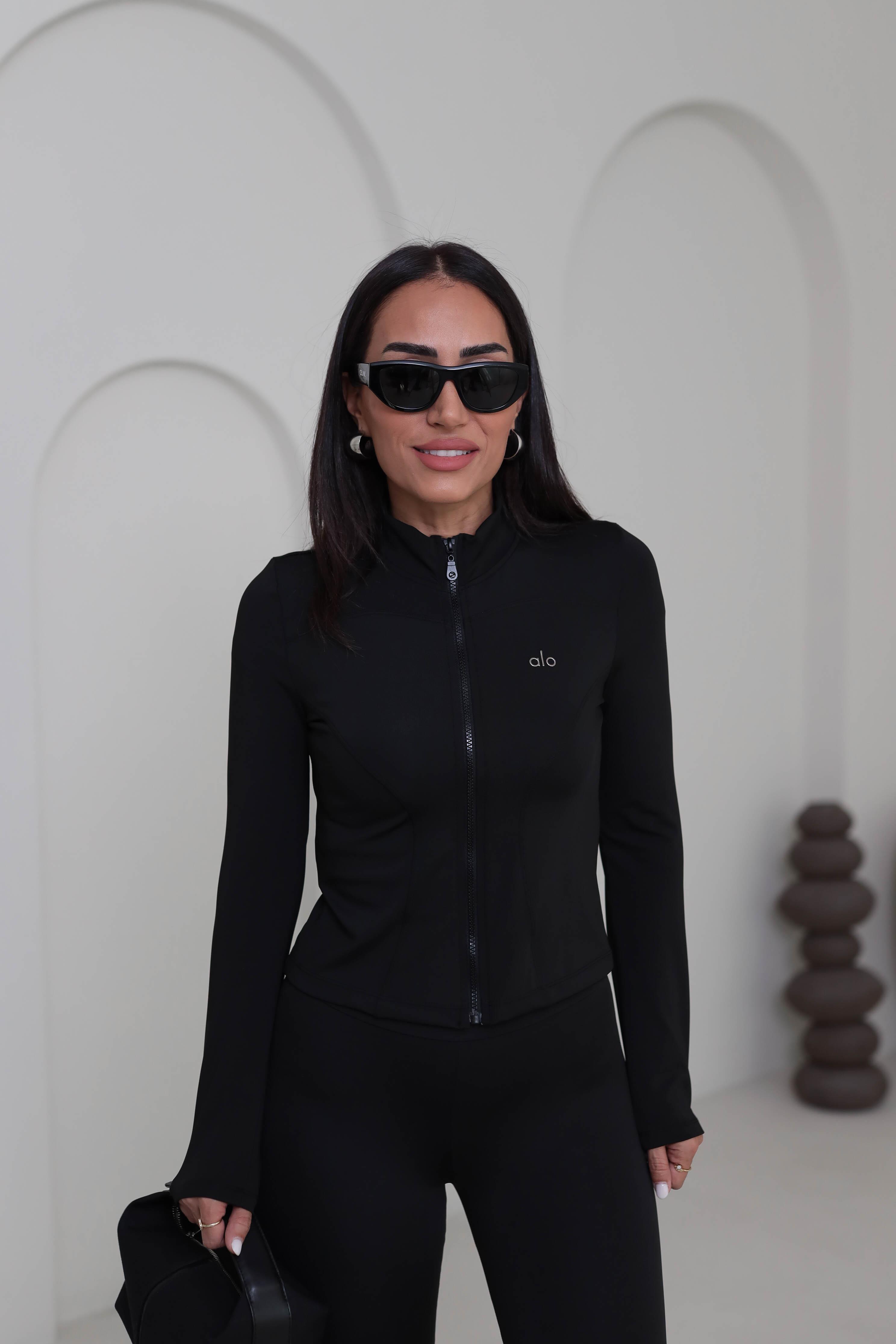 T001 Yazı Baskılı Fermuarlı Spor Ceket SİYAH (P-000007284)
